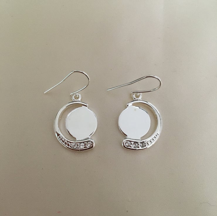 New moon earring setting with 3 crystals and a 12mm flat pad