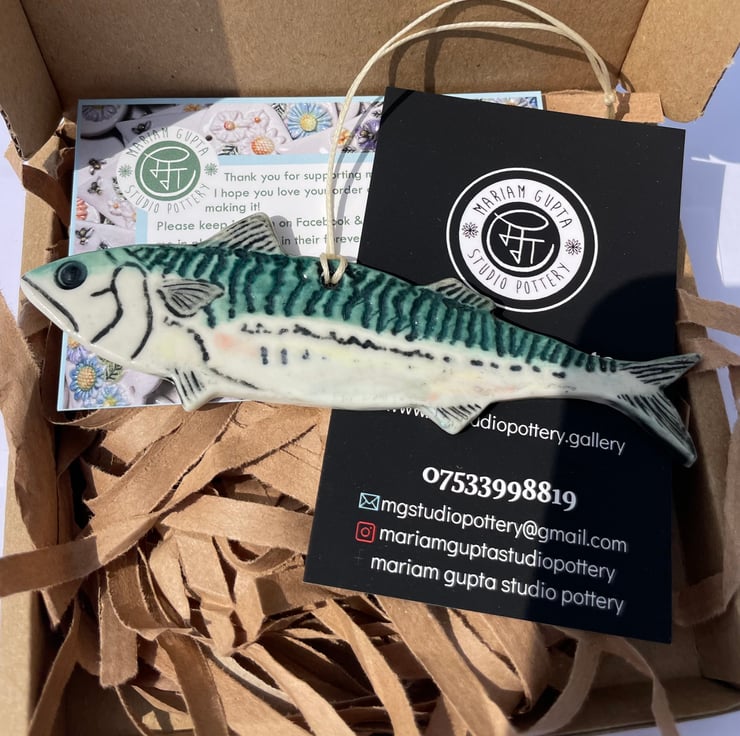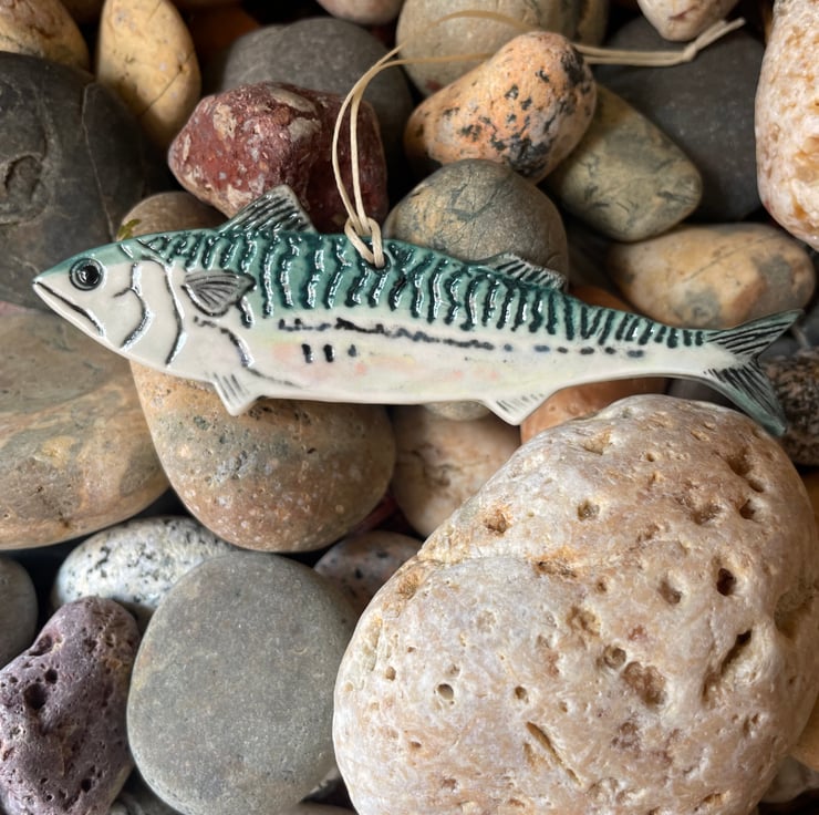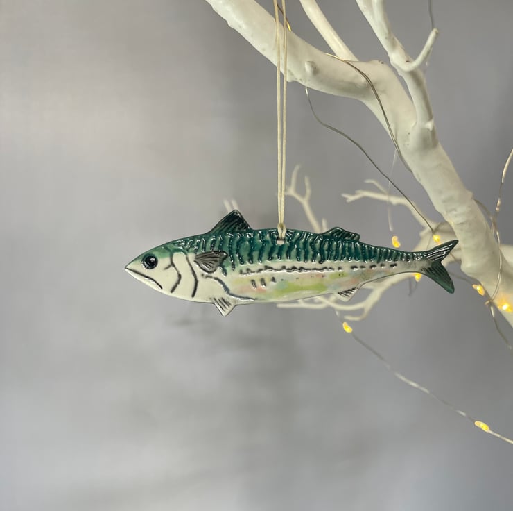 This handmade mackerel hanging decoration is a charming and artistic piece that captures the essence of these sleek and beautiful fish. It is crafted with care and attention to detail, making it a unique and eye-catching addition to any space.