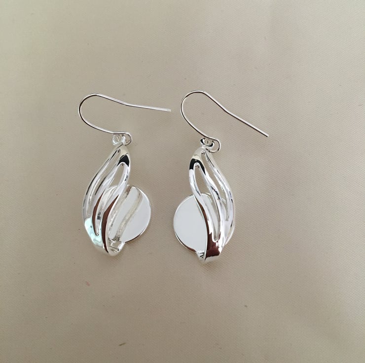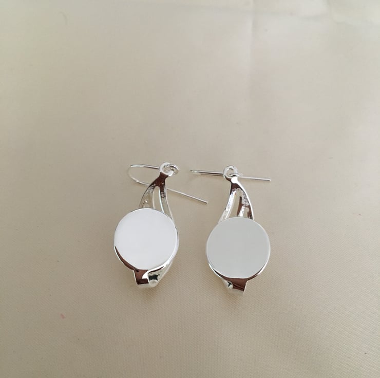 Wave design earring setting with 14mm flat pad