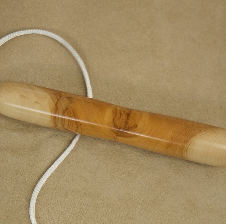 This unique wood light pull pendant, hand made in my workshop on Sanday, Orkney, is supplied with 600mm of white cord so it's very easy to attach to your switch. Made using a lovely single piece of yew, the pendant has the distinctive light brown and tan colour unique to yew. The pendant is 120mm long and 19mm wide, and has a shallow waist turned to the centre.