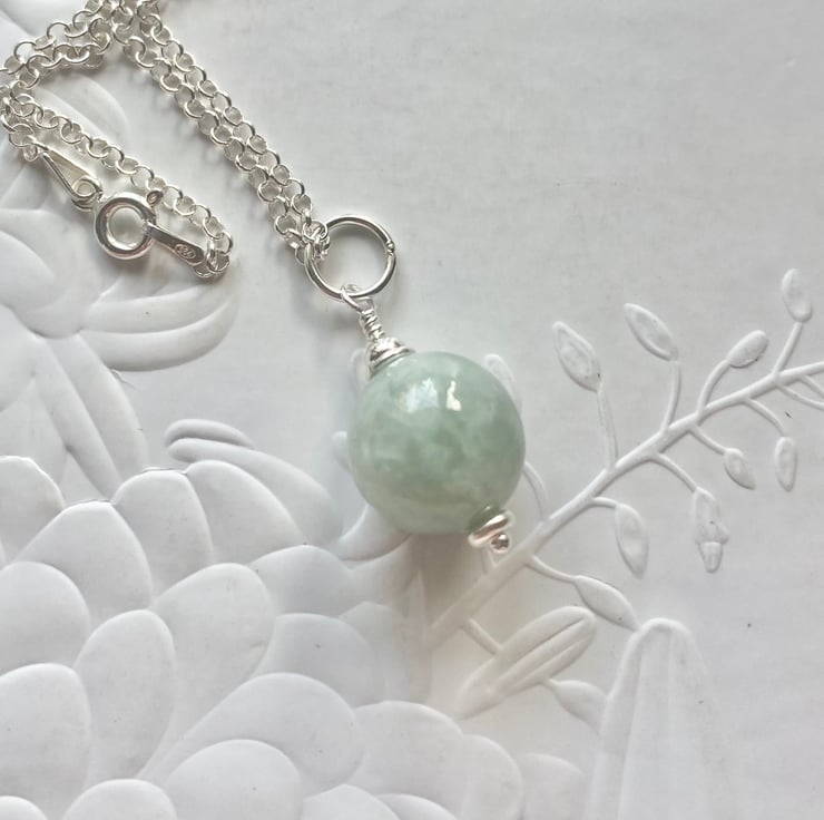 A beautiful pendant featuring a 12mm Grade A green Burmese Jadeite round with a 925 sterling silver bail. The pendant comes on an 18in sterling silver chain and will be received packaged in an Eco Lola Loves presentation box. I will gift wrap this for you. I can include a short message, if you are buying as a gift. Just leave the details when placing your order.