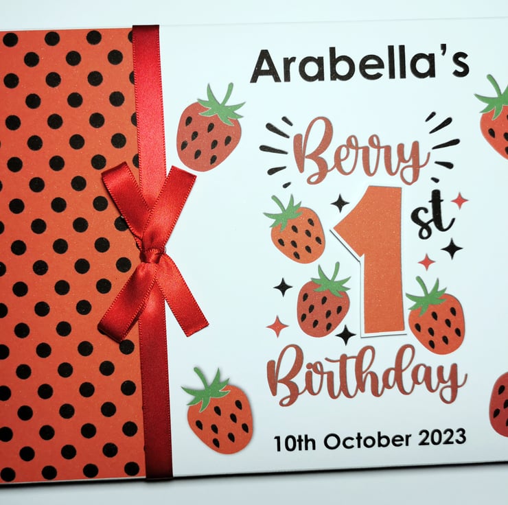 Strawberry Birthday Guest book, Berry 1st birthday guest book, gift