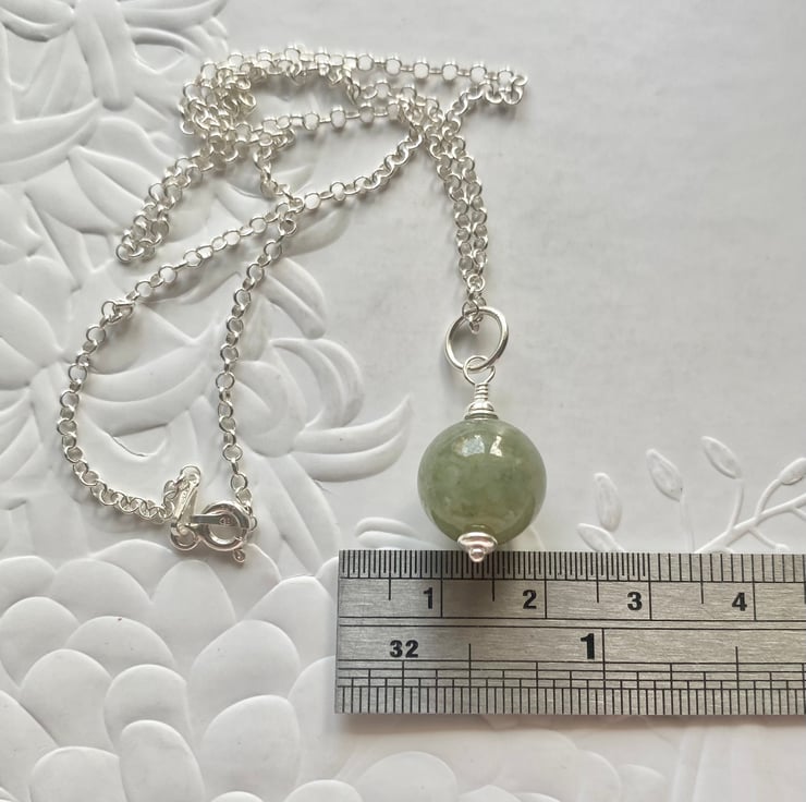 A beautiful handmade pendant featuring a 12mm Grade A dark green, Burmese Jadeite round with a 925 sterling silver bail. The pendant comes on an 18in sterling silver chain and will be received packaged in an Eco Lola Loves presentation box. I will gift wrap this for you. I can include a short message, if you are buying as a gift. Just leave the details when placing your order.