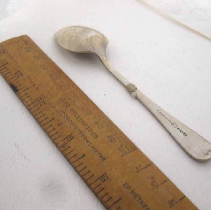 Please note this is a vintage spoon and it has a few blemishe and its original packing thread still wound round the handle, so please do look carefully at the photos if the condition of the spoon matters more than the message. This spoon has been around a bit and has character. It's a survivor. If you were looking for a mirror-finished brand new spoon, this isn't one. Just so you know.