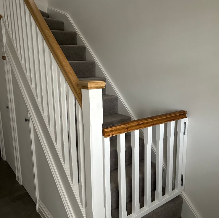 All of our gates are custom made and designed to match your existing stairs.