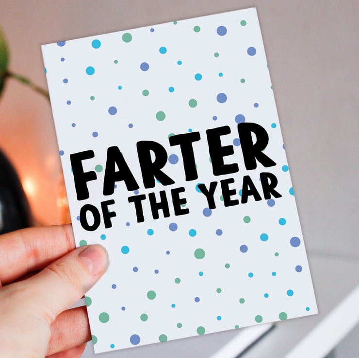 Funny, rude, farting, fart birthday card: Farter of the year (Size A6/A5/A4/Square 6x6")