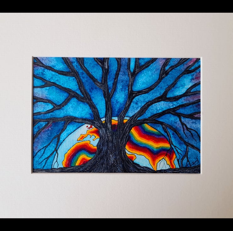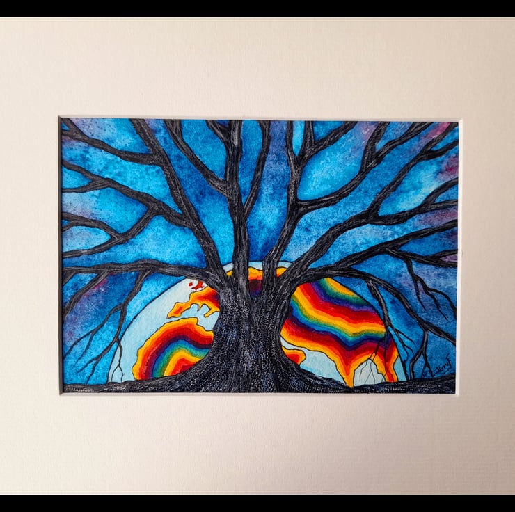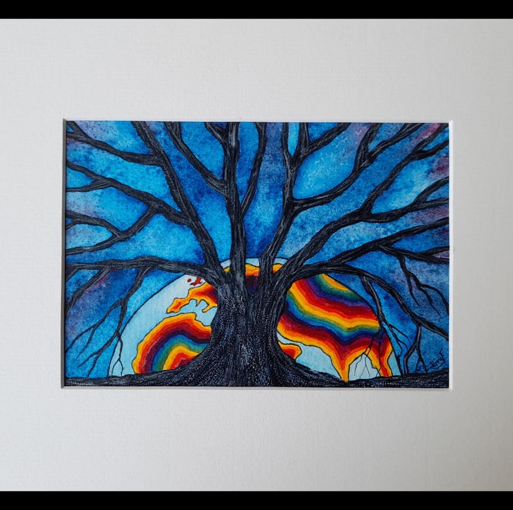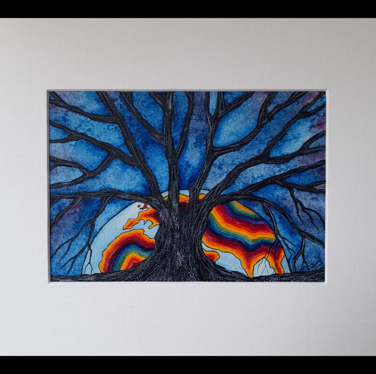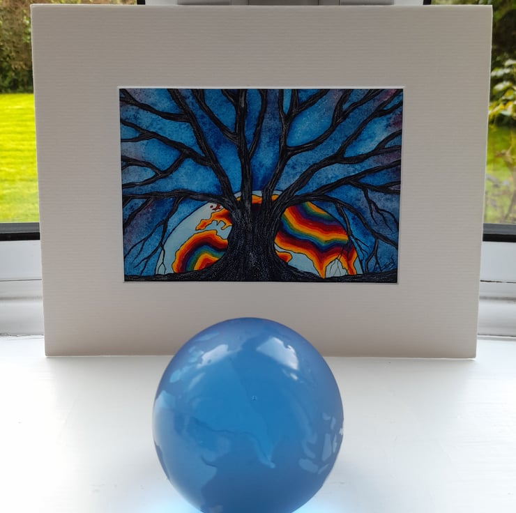 A World Under Pressure is an original 'fragile world' painting created in a surrealistic style with watercolours aind a touch of inktense..
