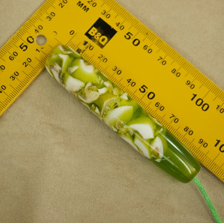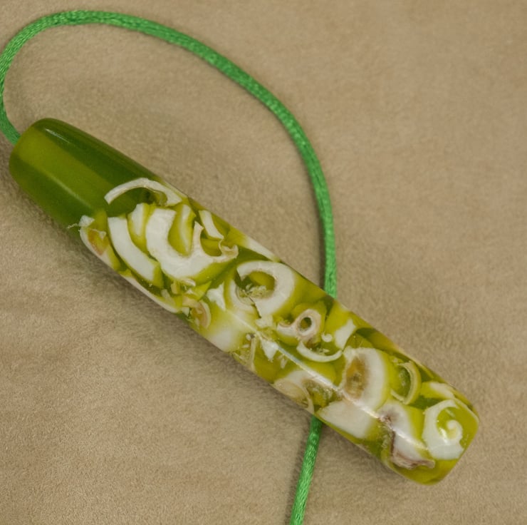 This unique light pull pendant is hand made on Orkney from real sea shells. This beautiful pendant is crafted in my studio overlooking the sea and it is supplied with 600mm of green cord, matching the green colour of the pendant, and is very easy to attach to your existing switch. The pendant contains genuine periwinkle sea shells, collected from our lovely beaches around Orkney, encased in resin and turned to shape by hand on my lathe. The semi-transparent resin allows you to see into the pendant, showing off the beauty of the shells. The shape of the pendant makes it much easier to grip than standard toggles, and it is approximately 95mm long and 19mm wide and postage is included in the price.