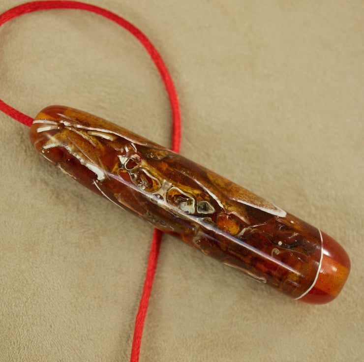 This stunning light pull pendant is hand crafted using crab shells on Orkney. Made in my studio by the sea, it is supplied with 600mm of bright red cord, complimenting the orange-red colour of the pendant so it's easy to attach to your existing switch. This light pull pendant contains genuine crab claw and carapace shells, collected from the lovely beaches around Sanday, our island home. Encased in resin and turned to shape by hand on my lathe, the semi-transparent resin allows you to see into the pendant, showing off the beauty of the crab shells. The pendant is 87mm long and 20mm wide and postage is included in the price.