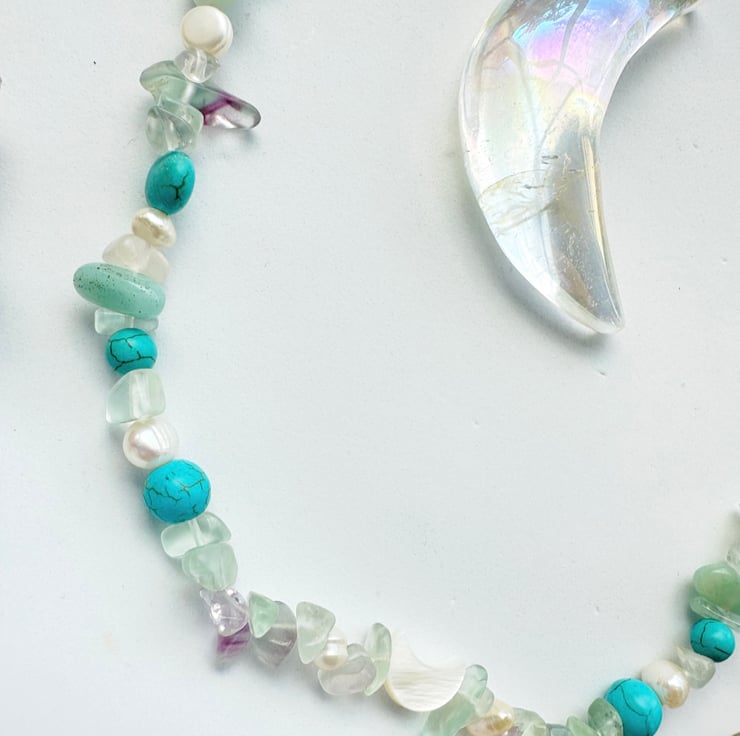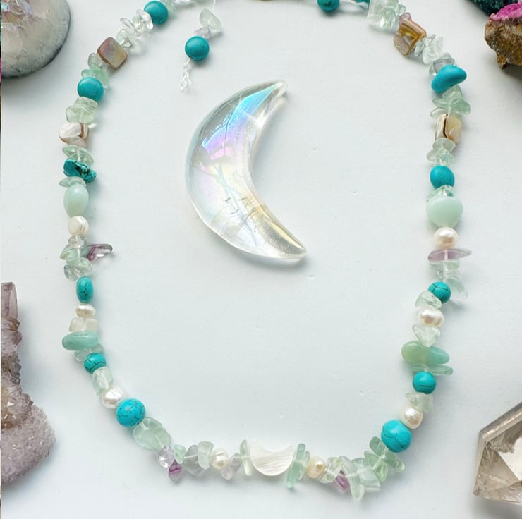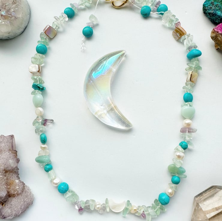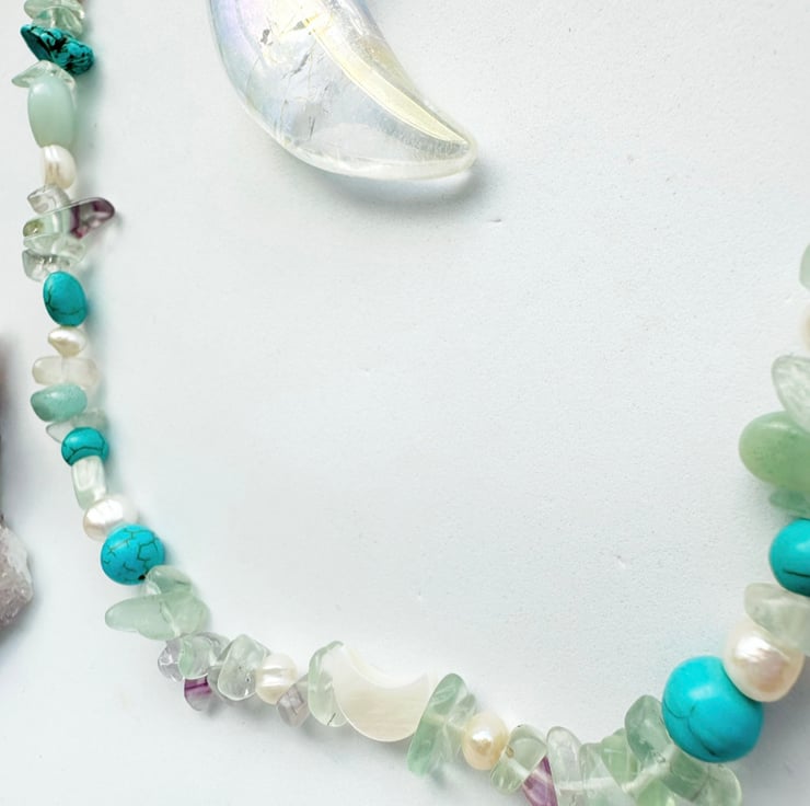 Pearl Gemstone Moon Necklace Larimar,Moon necklace, Fluorite, Turquoise, Ocean
