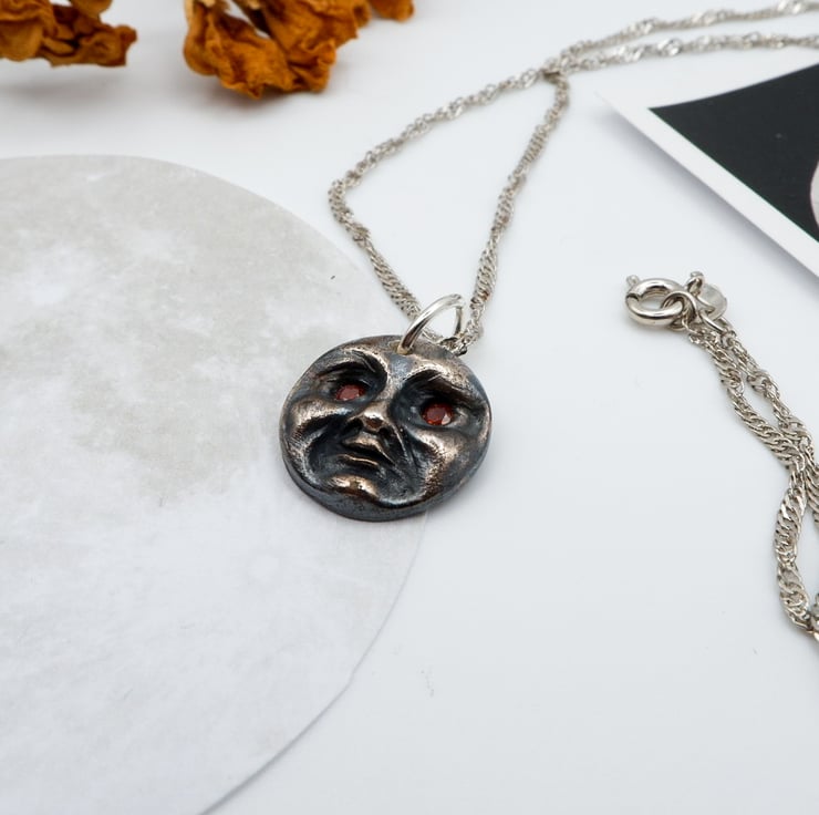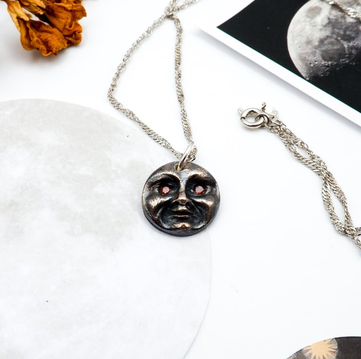 With its cheeky garnet gemstone eyes, it's an absolute must-have for moon lovers, Selenophiles, and anyone with a penchant for all things Gothic and whimsical!