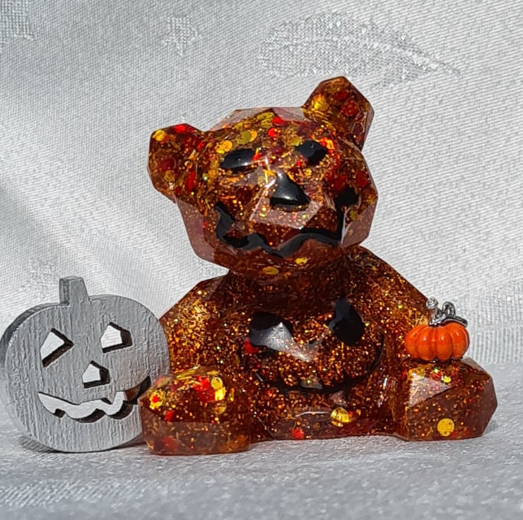 Gorgeous resin art Halloween bear - Pumpkin Patch.