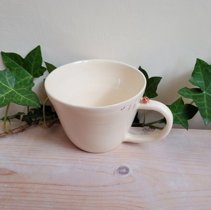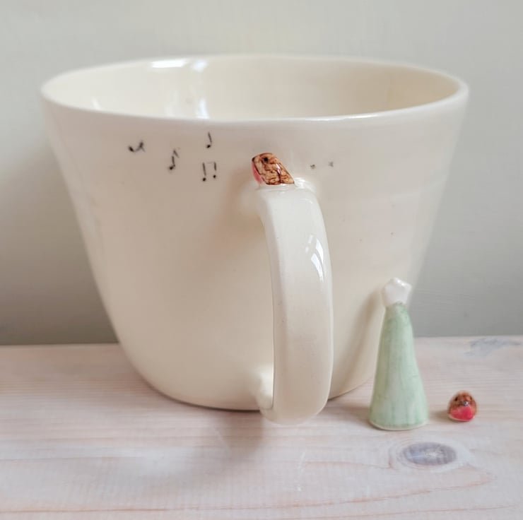 I enjoy making cup with little miniature characters This mug would make an ideal cup for a bird or garden lover. The colours of the robin pop against the white earthenware clay