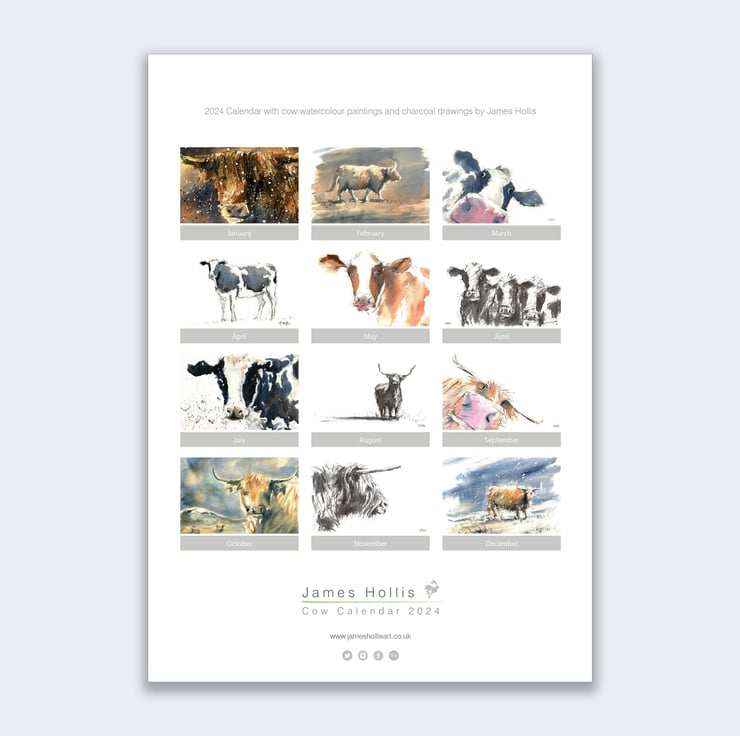 Cows are such docile, gentle and curious animals and wonderful to paint. I thought it would be a good idea to pick some of my favourite cow paintings and create a calendar.