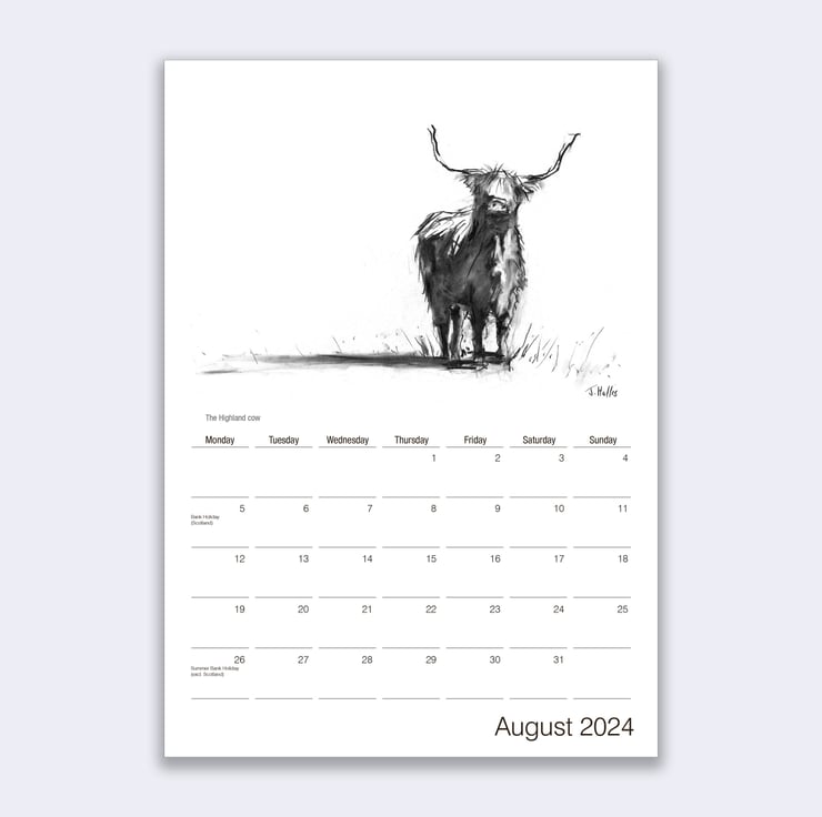 A charming 2024 cow calendar, with cow paintings that will raise a smile, perfect to keep organized for the year or to give as a gift.