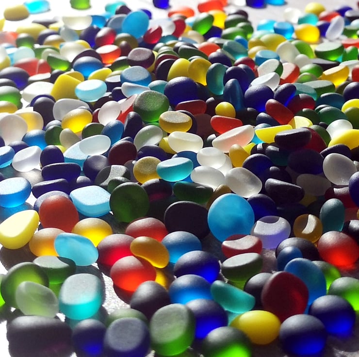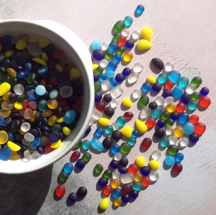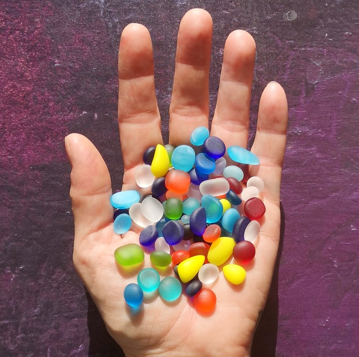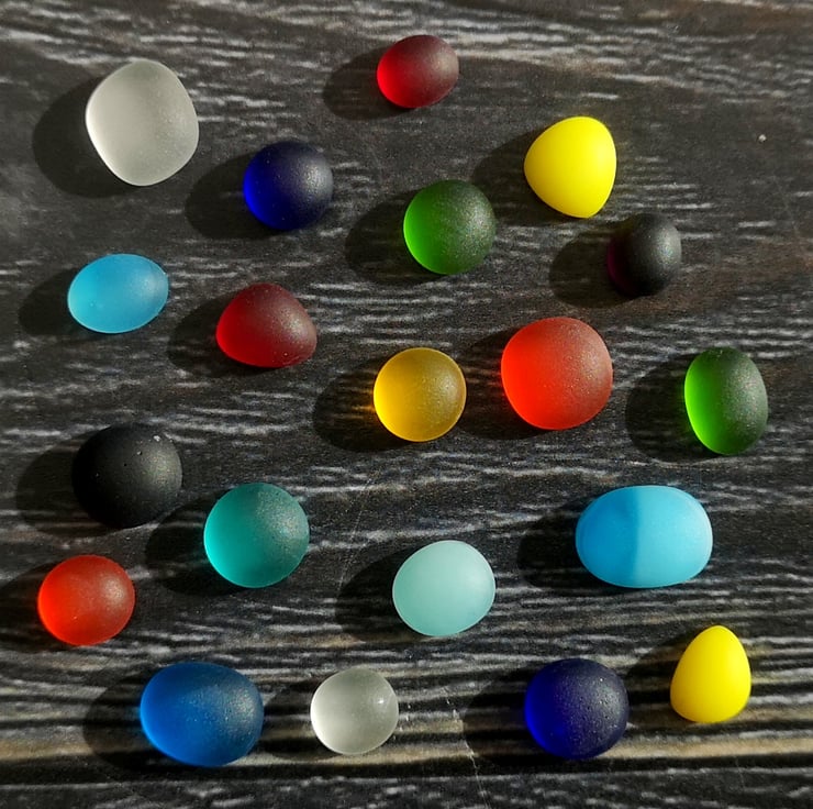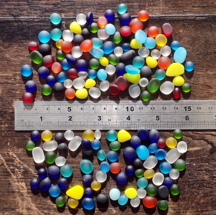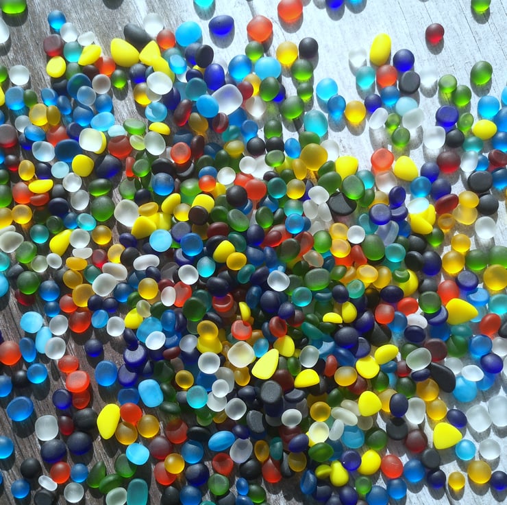 Mixed bags of tumbled glass. Different sizes and shapes. Most pieces are between 0.5 - 1.5cm (smaller pieces than my other mixes). Ready to be transformed into your own art projects!