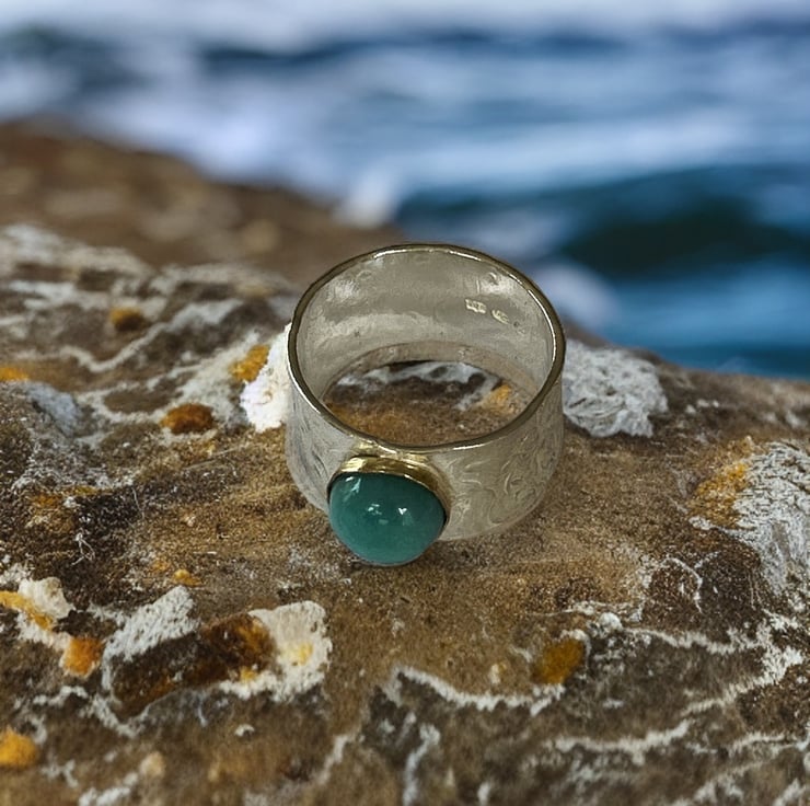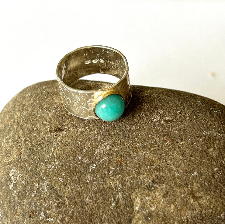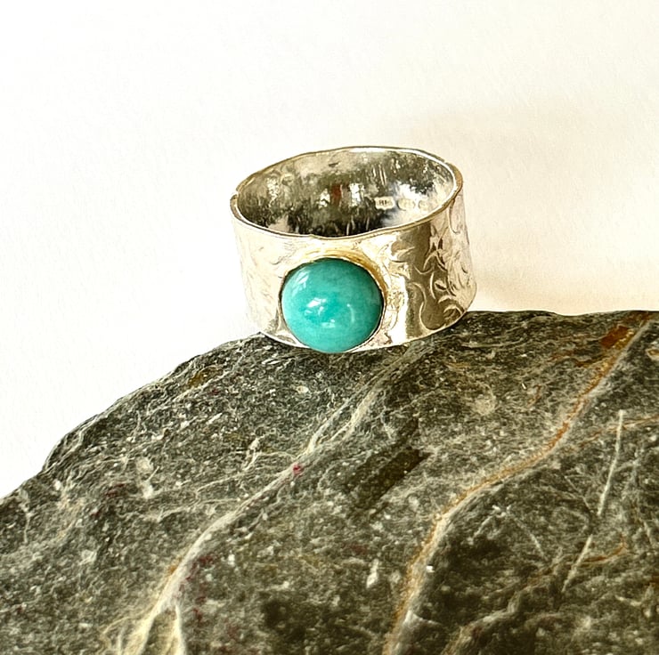 With a generous width of 12mmand a soft pattern finish, this ring excudes Bohemian charm that's perfect for those seeking a unique and artistic accessory. Whether you're dressing you're dressing up for a special occasion or adding a touch of elegance to your everyday look, this handmade sterling silver statement ring is the ideal choice.