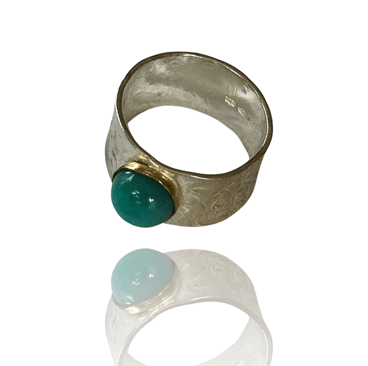 Crafted with care, this artisan ring showcases a subtle contrast between the shimmering silver band and the radiant gemstone. What makes the ring even more special is its commitment to sustainability - the sterling silver used is recycled and eco-friendly.