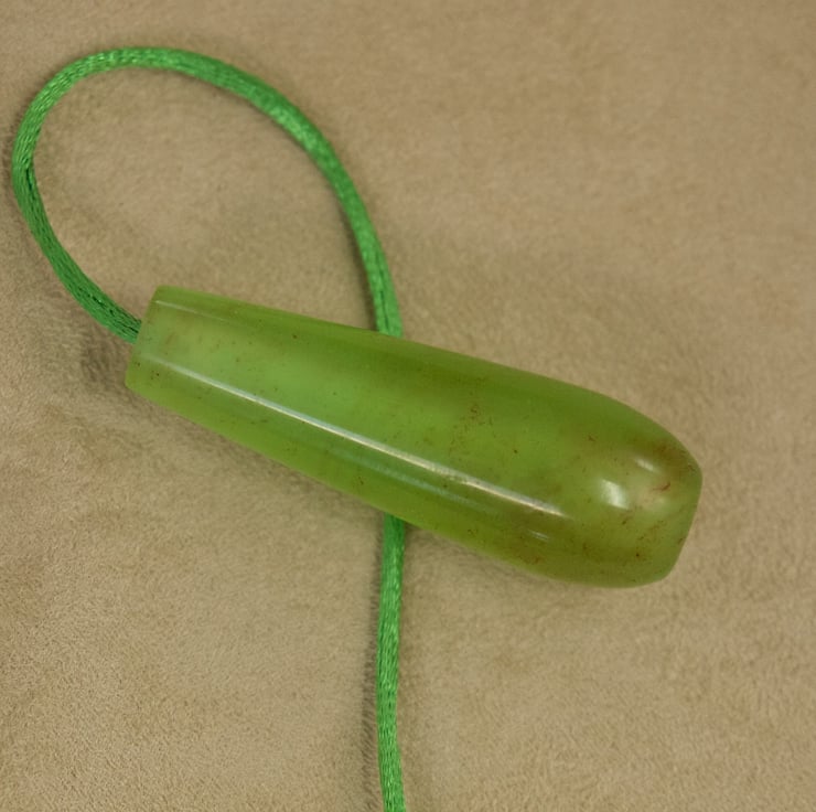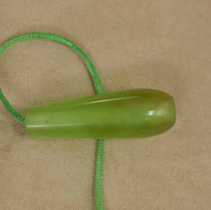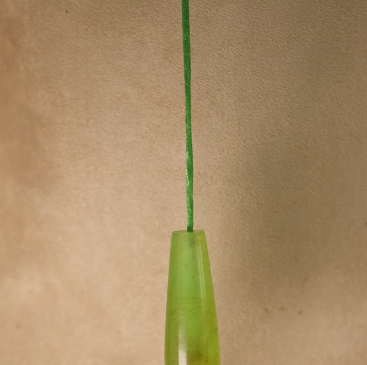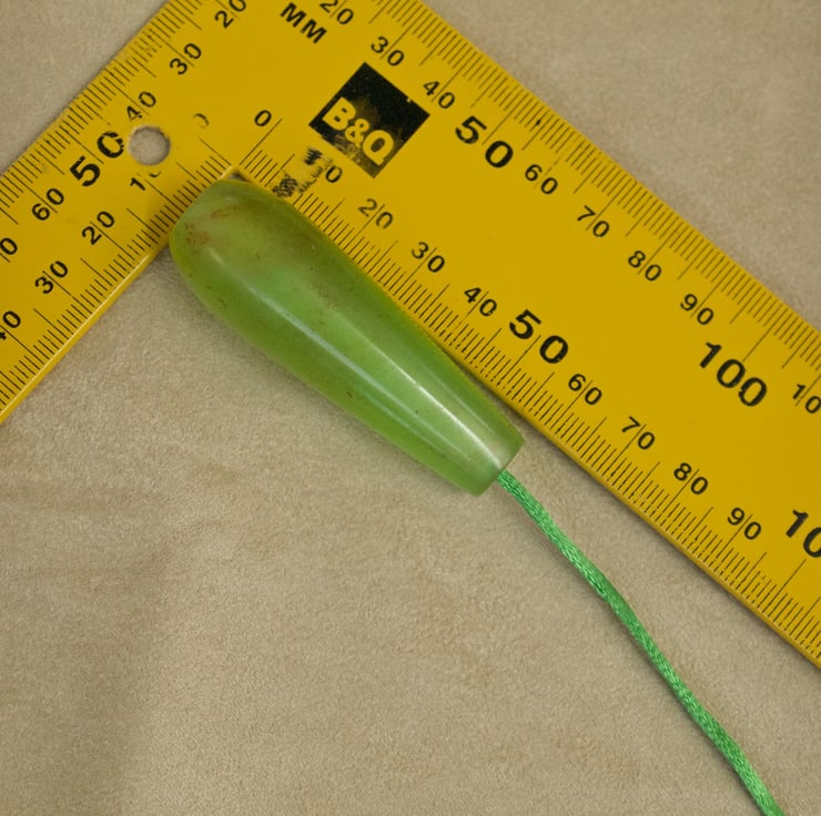 This unusual hand made bathroom light pull pendant, hand crafted in my workshop on Sanday, Orkney, is supplied with 600mm of bright green cord, complimenting the colour of the pendant, so it's very easy to attach to your existing switch. It can be used in any room which has a suitable switch. The pendant is made from resin which I have coloured with a light green dye with orange-red accents, cast in my own custom made moulds and turned to shape by hand on my lathe. The semi-transparent resin allows light to shine through into the pendant, enhancing it's colour . The pendant is 57mm long and 20mm wide