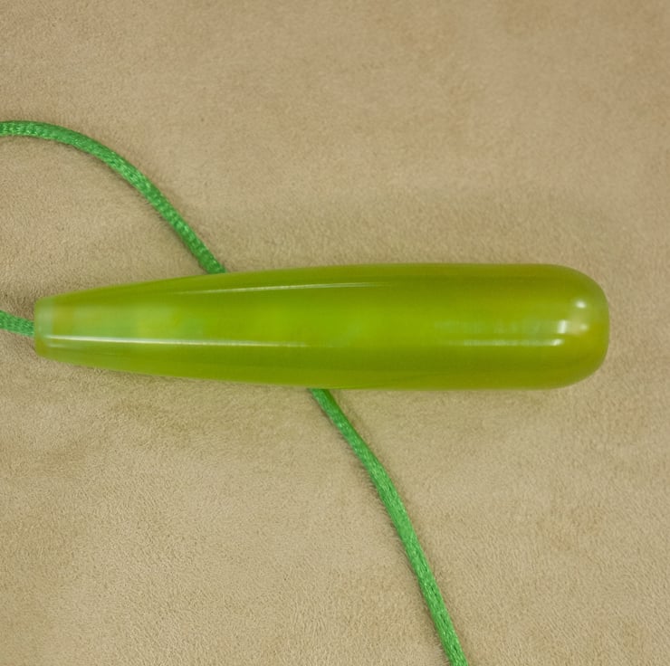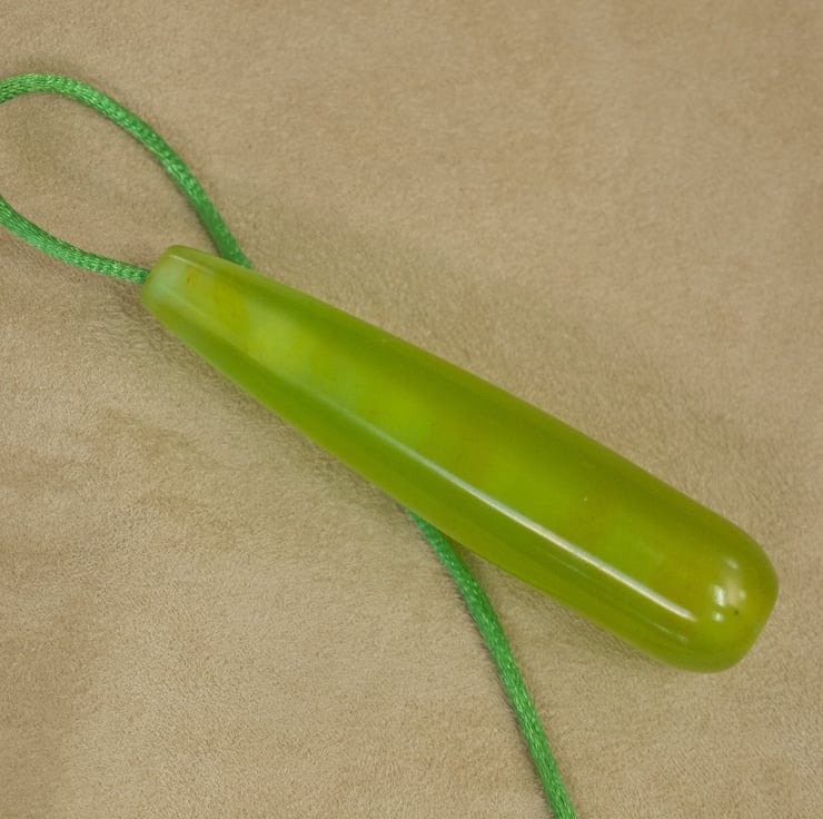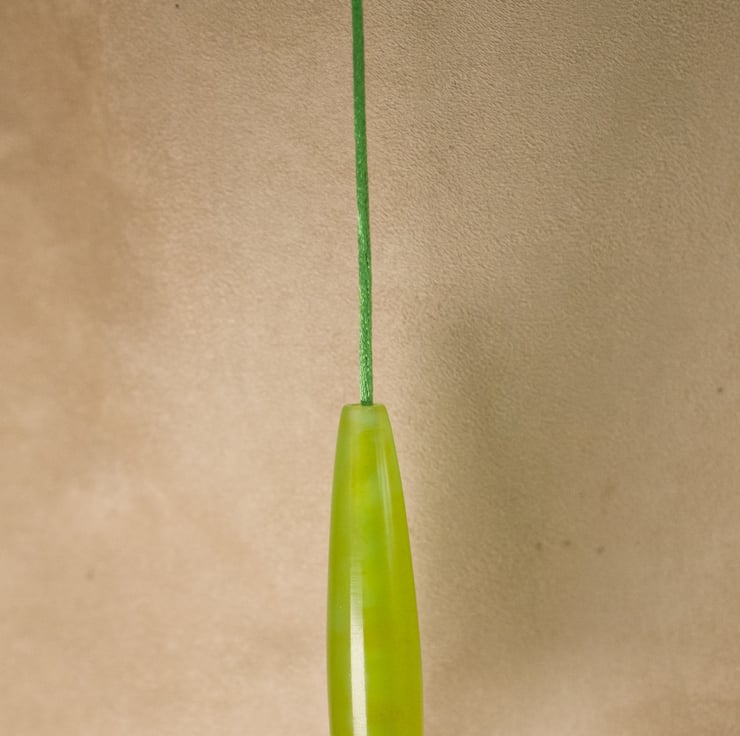 Inspired by the colours of the aurora borealis, this bathroom light pull is hand made in Orkney. and is supplied with 600mm of bright green cord. Made in my studio overlooking the coast, the pendant is made from resin which I have coloured with a light green dye with orange-red accents, cast in my own custom made moulds and turned to shape by hand on my lathe. The semi-transparent resin allows light to shine through into the pendant, enhancing it's colour . The pendant is 85mm long and 19mm wide, and postage is included in the price.