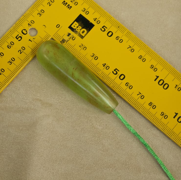 This bathroom light pull pendant is inspired by the aurora borealis. Hand crafted in my workshop on Sanday, Orkney, it is supplied with 600mm of bright green cord, complimenting the pale green colour of the pendant. The pendant is made from craft resin which I have coloured with a light green dye with orange-red speckled lines running through it, cast in my own custom made moulds and turned to an elongated tear-drop shape by hand on my lathe. The semi-transparent resin allows light to shine through into the pendant, enhancing its colour. The pendant is 62mm long and 19mm wide, and postage is included in the price.