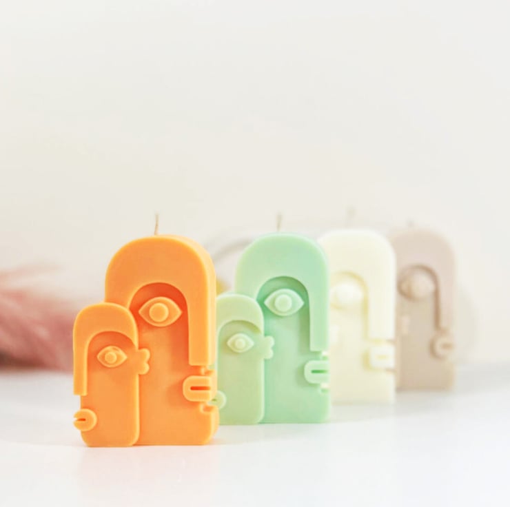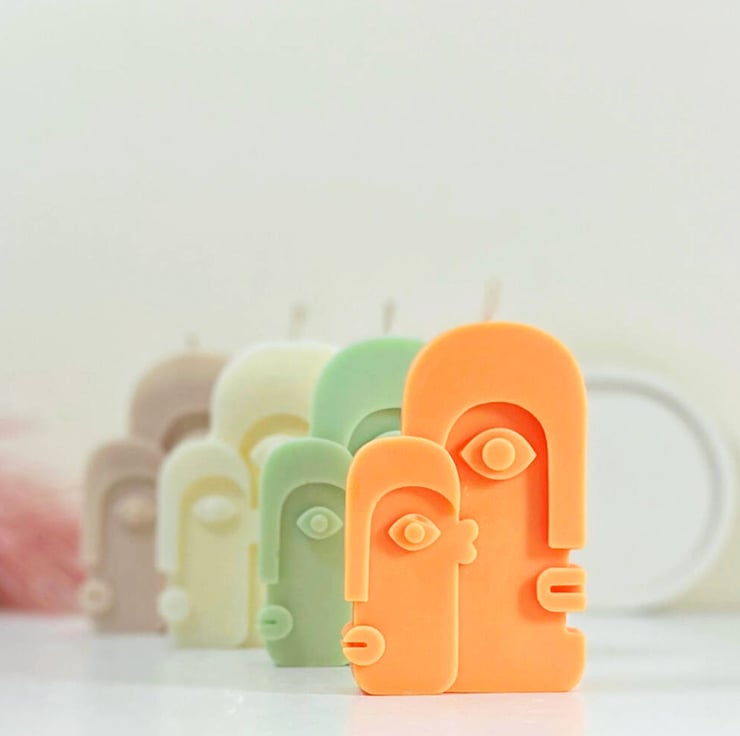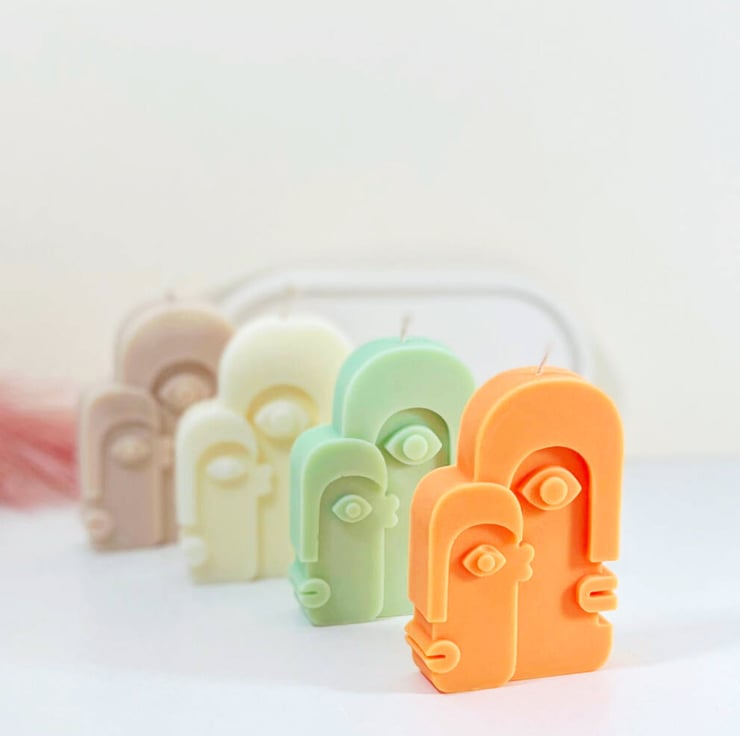 Bring a touch of contemporary cubism into your home with these abstract face shape candles! Handcrafted from 100% natural soy wax, these vegan friendly and biodegradable decorative candles have a unique style inspired by the likes of Picasso. Perfect for adding some pastel pops of color and a bit of quirkiness to your tables or shelves. Gift yours (or keep it!) with confidence!