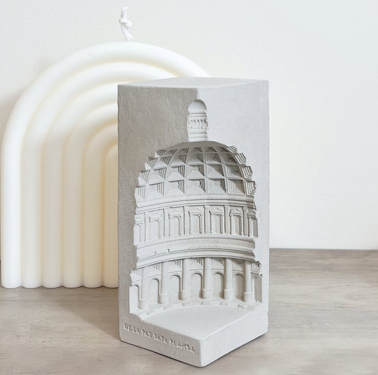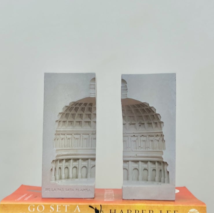 Exhibit your love for history with these unique Roman Pantheon style bookends. Crafted from concrete in a classic Roman dome and pillar design, they'll add a sophisticated touch to your bookshelves while keeping your books neatly organised. A perfect gift for architecture and history buffs alike!