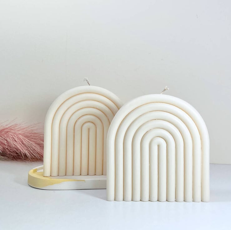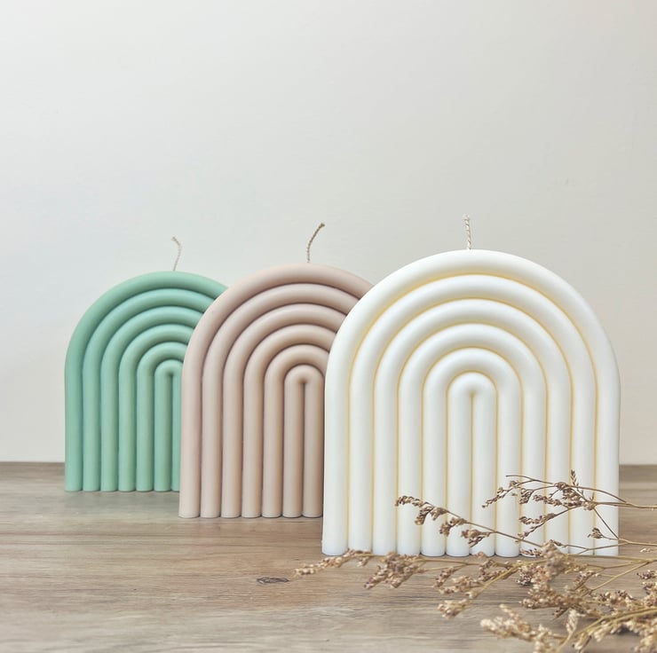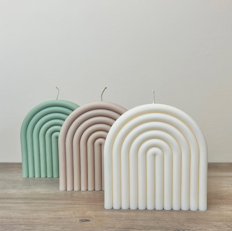 This Rainbow Arch Soy Candle is the perfect decorative item for your home; it features a large arch shape with a unique rainbow design. This large rainbow arch candle is made from 100% natural, vegan-friendly, biodegradable soy wax. A perfect decoration for any occasion.