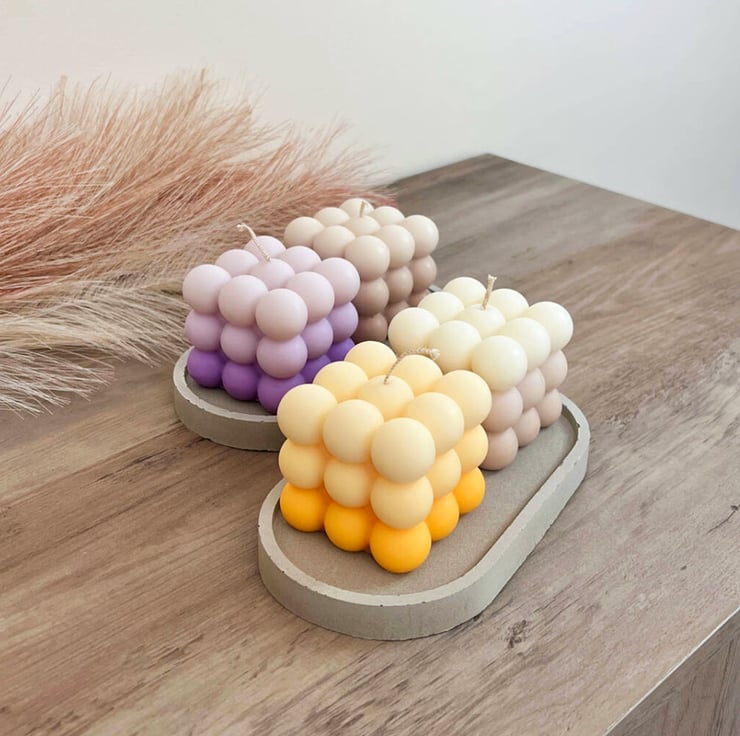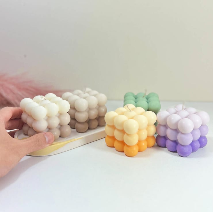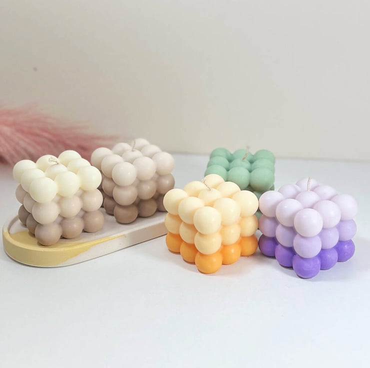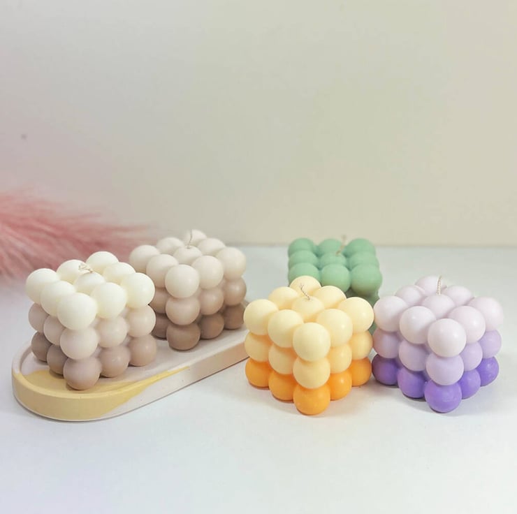 Our ombre bubble cube candles are made using 100% natural soy wax, making them vegan friendly and biodegradable as well.