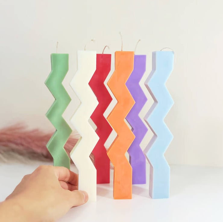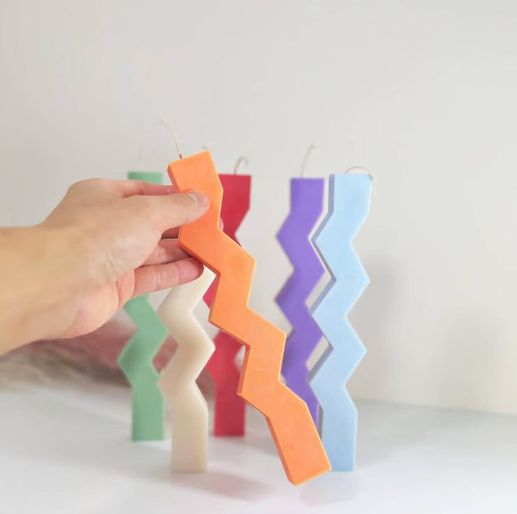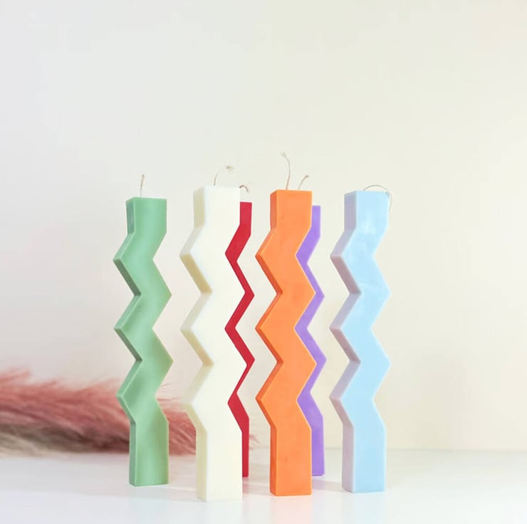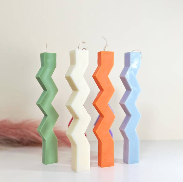 These wavy pastel-coloured dinner table candles are the perfect way to liven up your dining table and add a modern and minimalist touch to any room. The unique zigzag design creates a lightning bolt-shaped candle, providing both aesthetic appeal and an eye-catching statement to any tablescape. They make perfect dinner table candles and new home gifts!