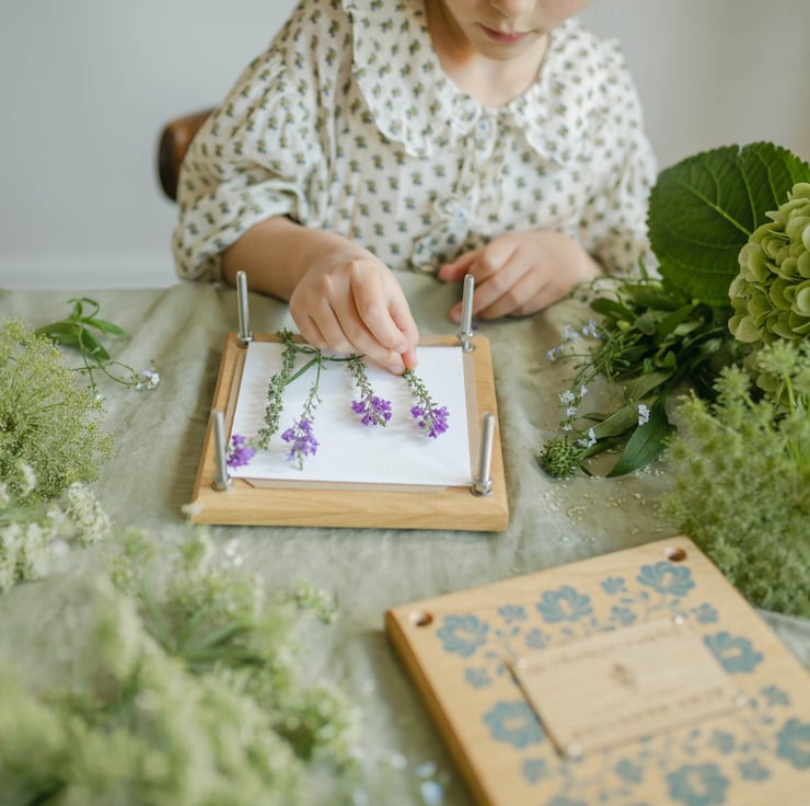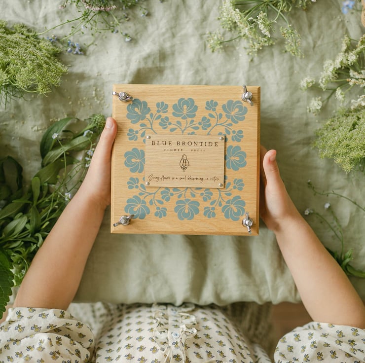 Handcrafted heirloom wooden flower presses in a beautiful 'folksy floral' design made for budding botanists and nature-lovers of all ages to preserve blooms, leaves, seaweed and nature finds!