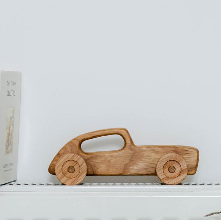 Drawing inspiration from iconic sports cars from the '60s each toy car is designed & handcrafted from start to finish in our little workshop here in the U.K. Made from sustainably sourced oak wood from FSC certified suppliers then lovingly hand-painted in Eco-certified, non-toxic, water-based paints. Meaning each car is completely unique with no two cars the same!