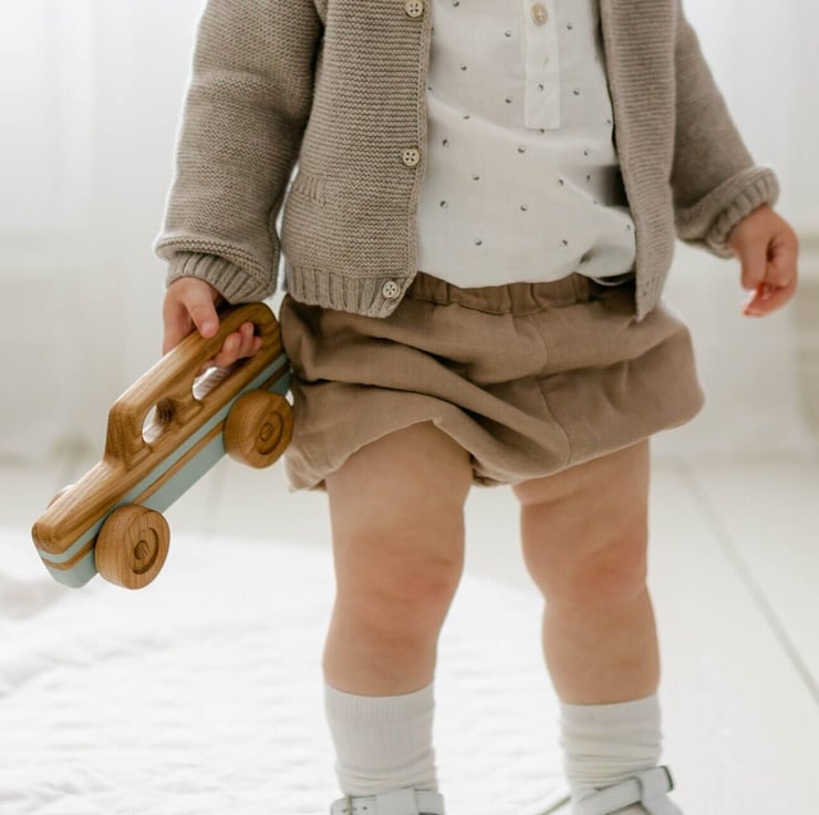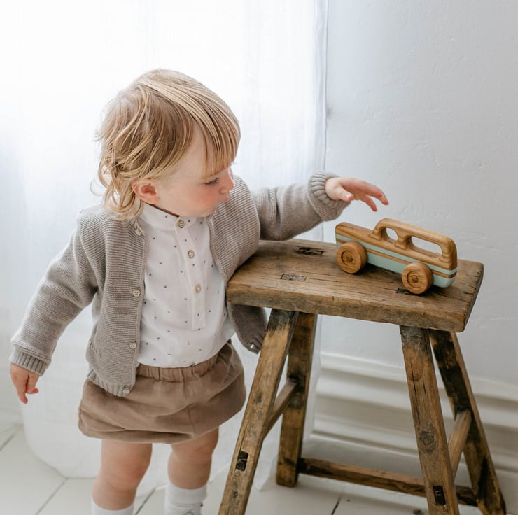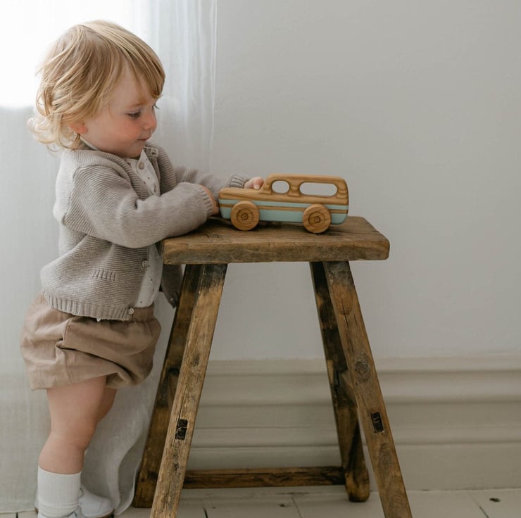 A little wooden retro station wagon, for little hands to grasp & play!