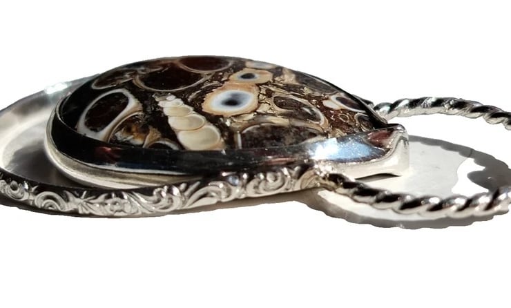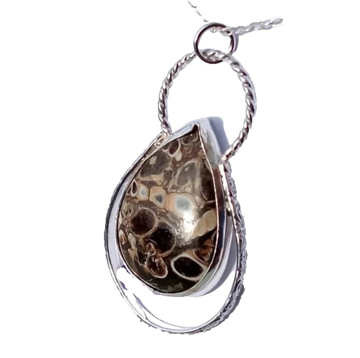 Handmade Recycled Sterling Silver .925 pendant with a fantastic specimen of a turritella fossil!