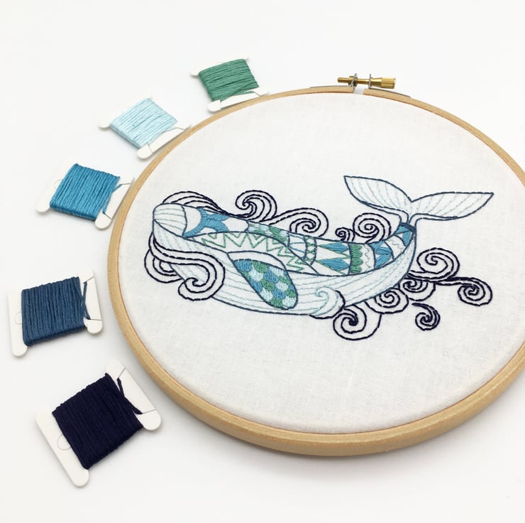 Whale Embroidery Kit - Simple Embroidery Kit, Hand Embroidery Kit