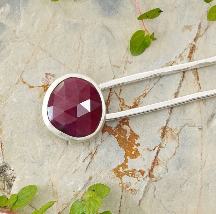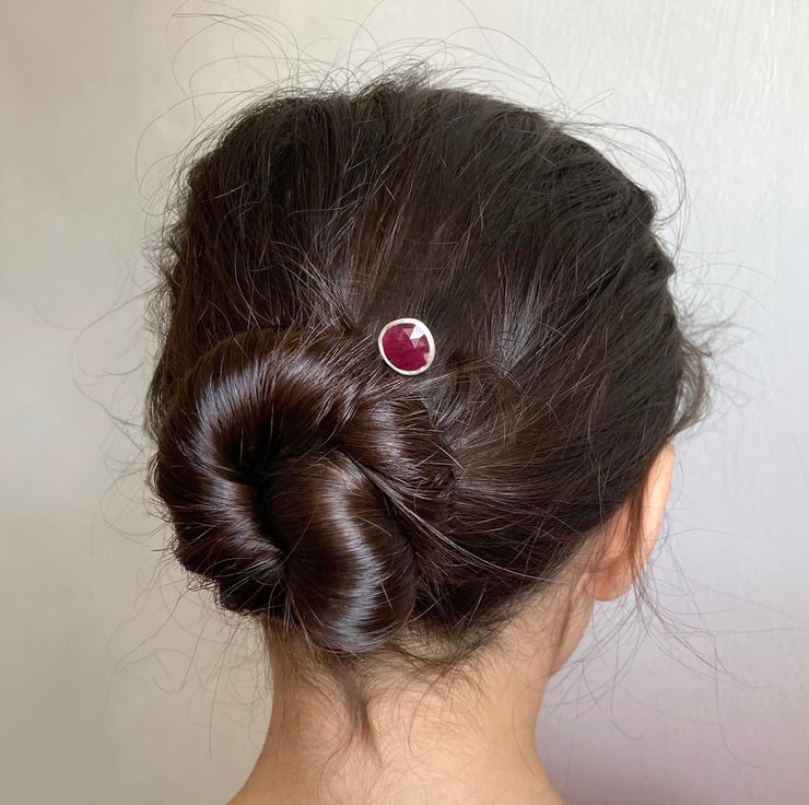 This natural ruby hairpin comes with a jewellery tin box.