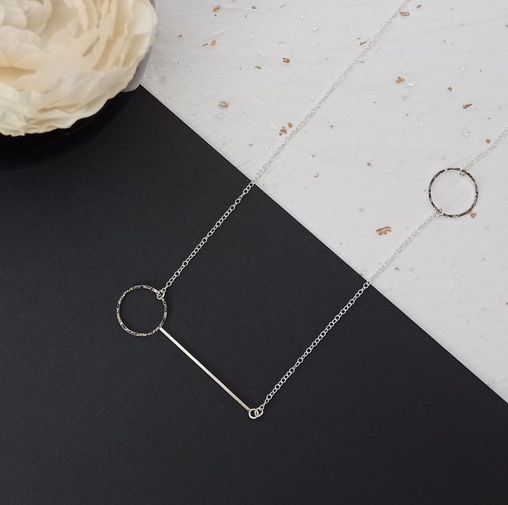 Sterling silver circles & wire necklace