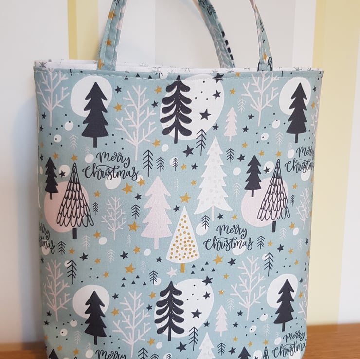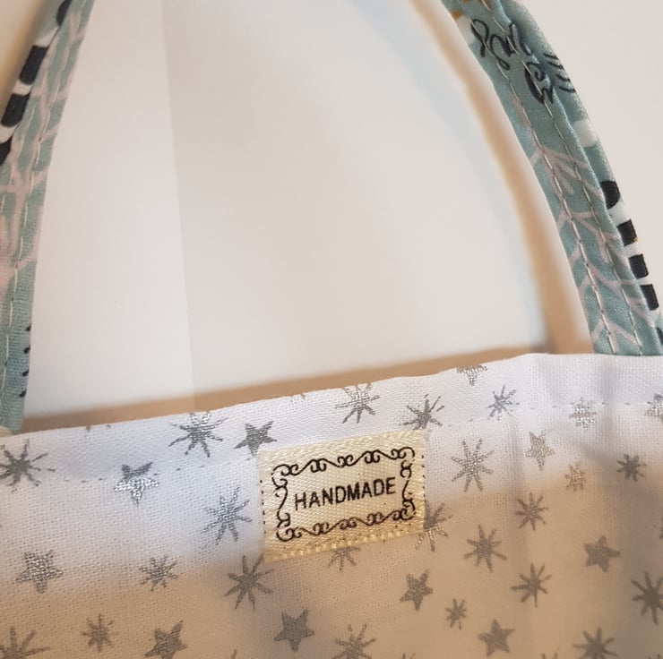 This little bag is ideal for popping in a small gift, or two. It measures approx 7" x 7": 18cm x 18cm and 2" , 5cm at the base. I have chosen a good quality cotton fabric , the bag is lined with a coordinating fabric and is interfaced with a recycled interfacing so it won't flop.