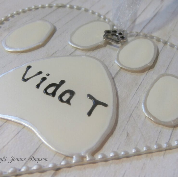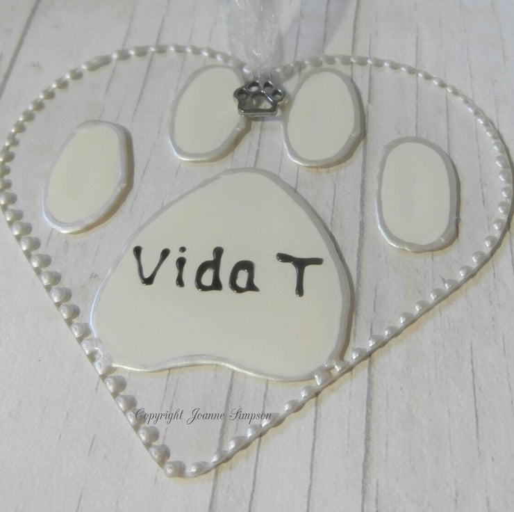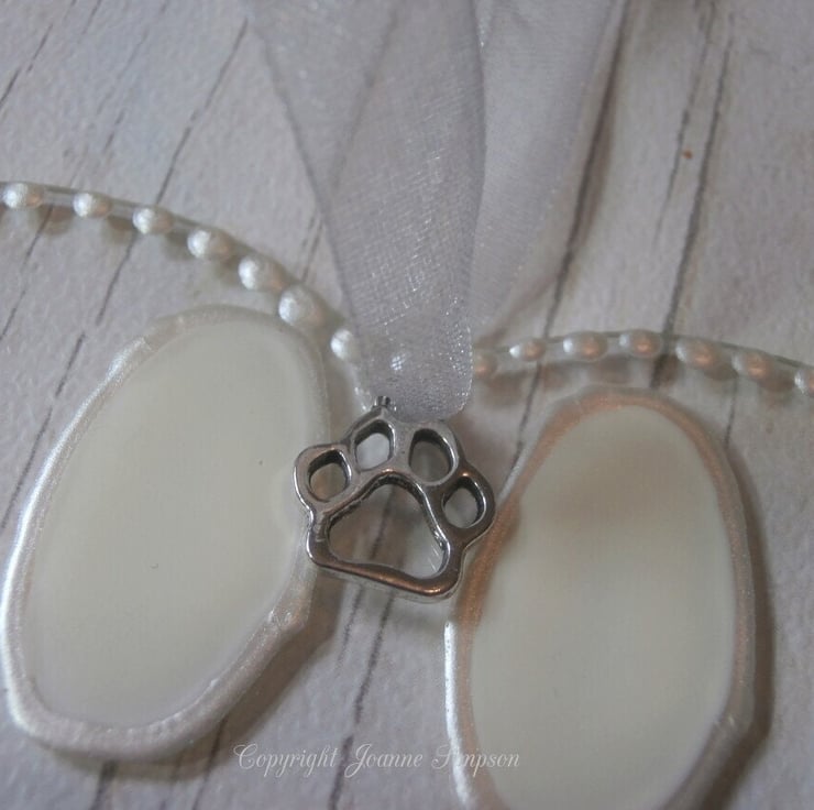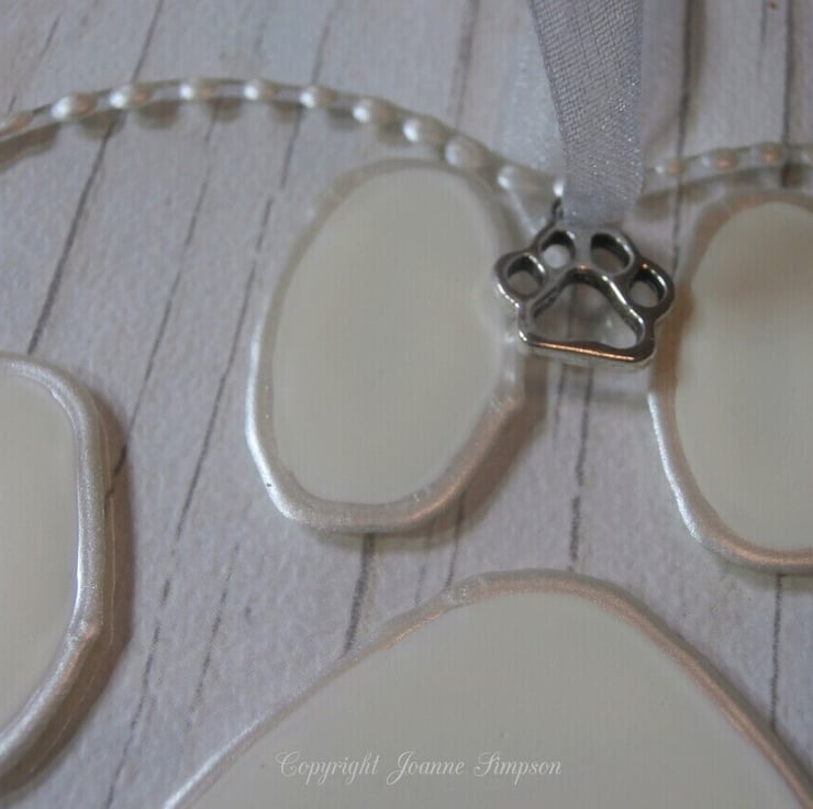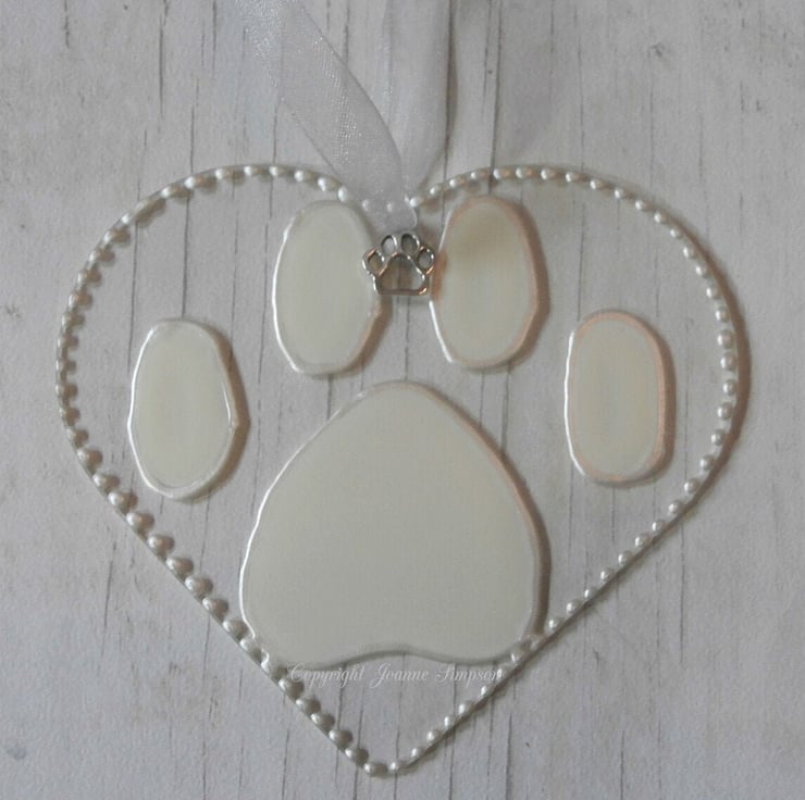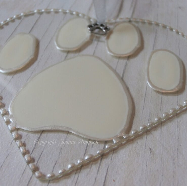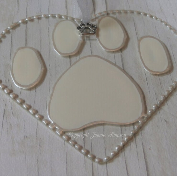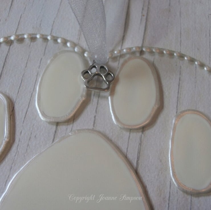 Pretty paws sun catcher, a perfect gift for any pet lover or just a treat for yourself. It can be personalised with upto seven letters (including spaces) finished with a silver organza ribbon and a paw print charm. Mother's day, Birthday, Thinking of you, pet birthday, Anniversary.