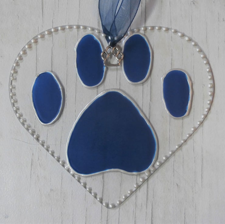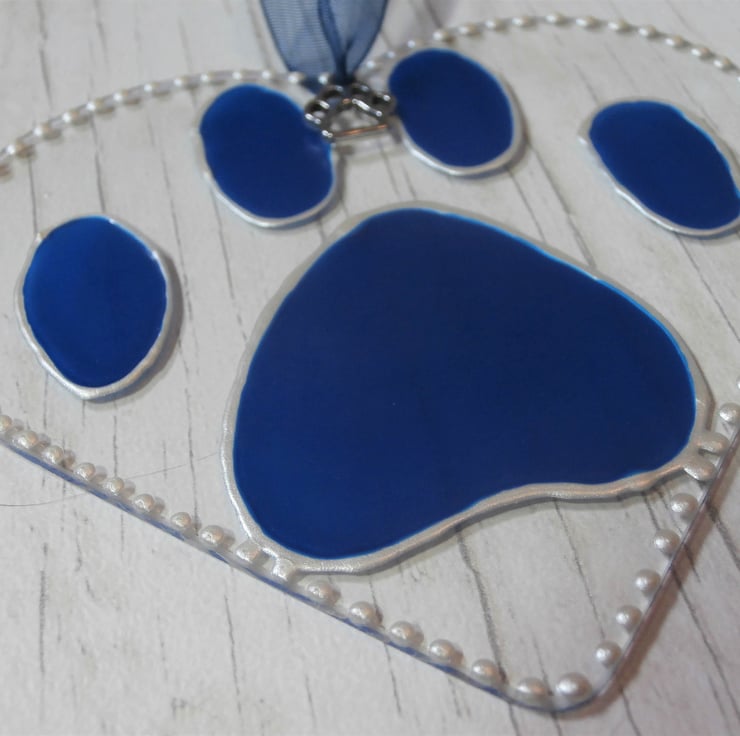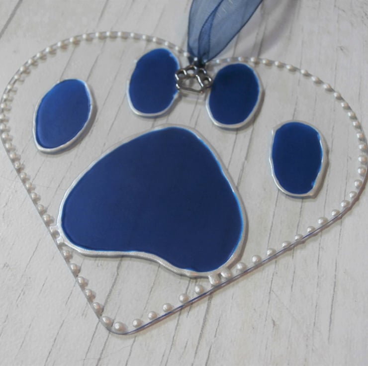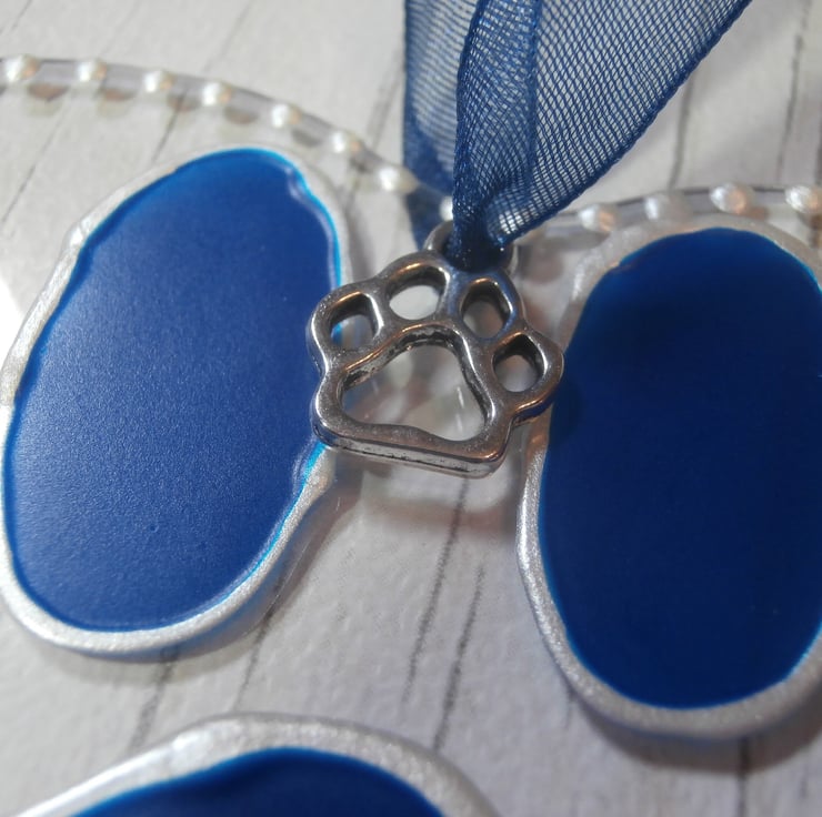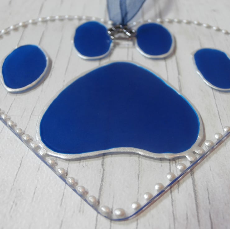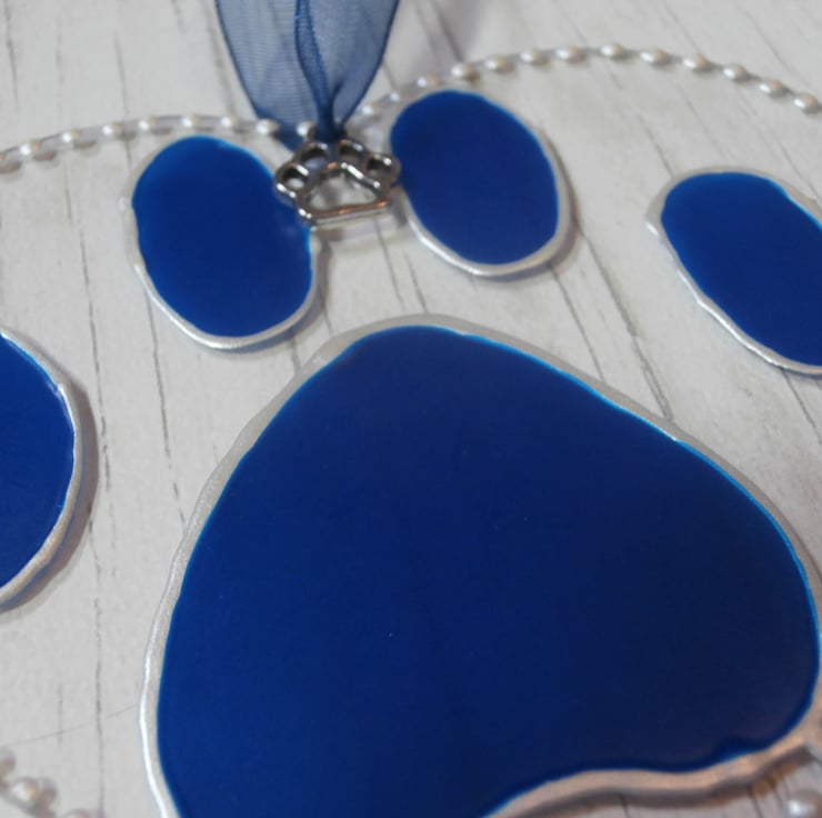 Paw print 'Pretty paws' hand painted sun catcher decoration. Cat gift, Dog gift,
