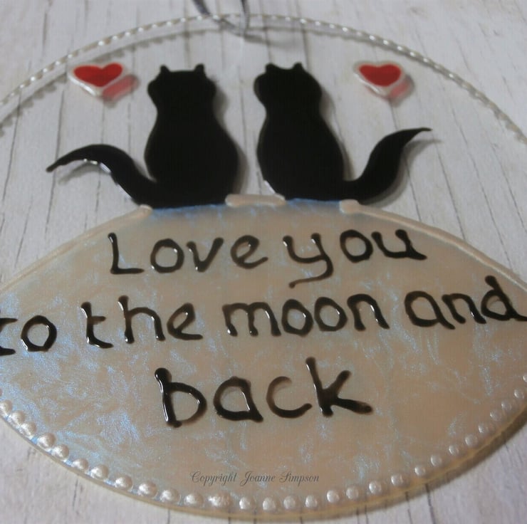 Black cats 'love you to the moon and back' sun catcher decoration hand painted.