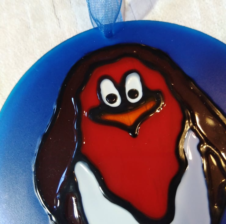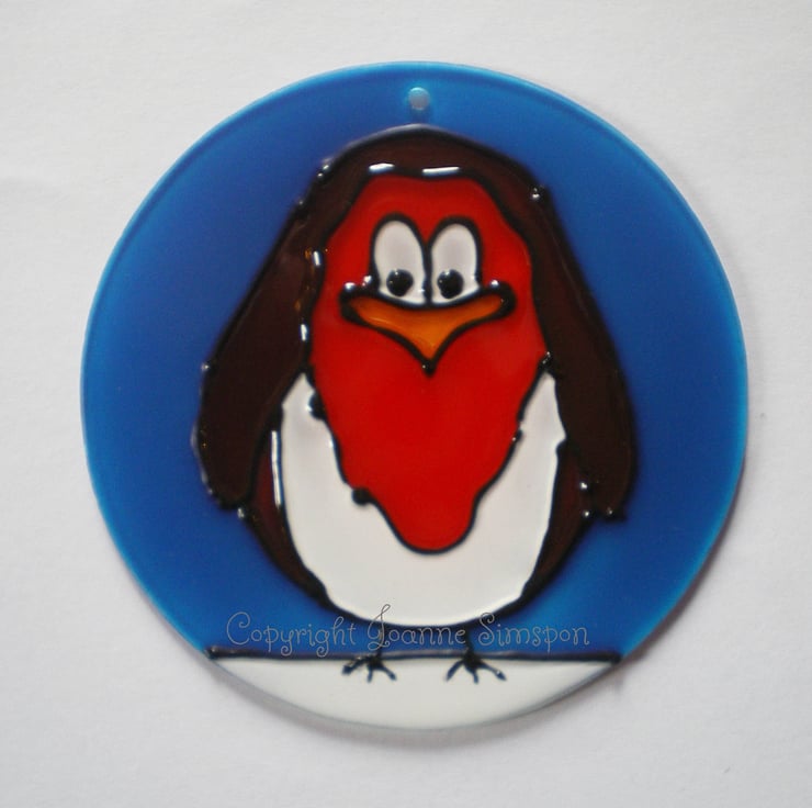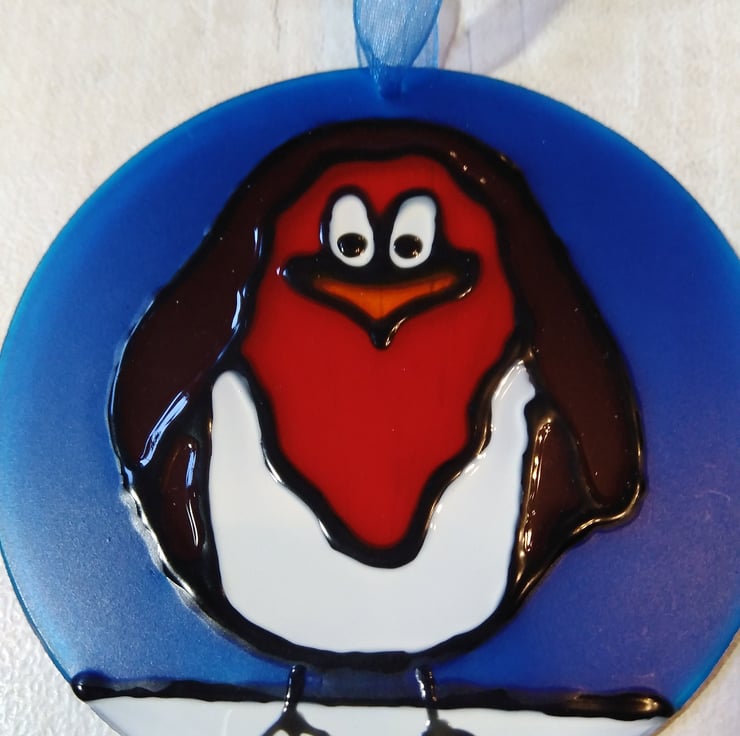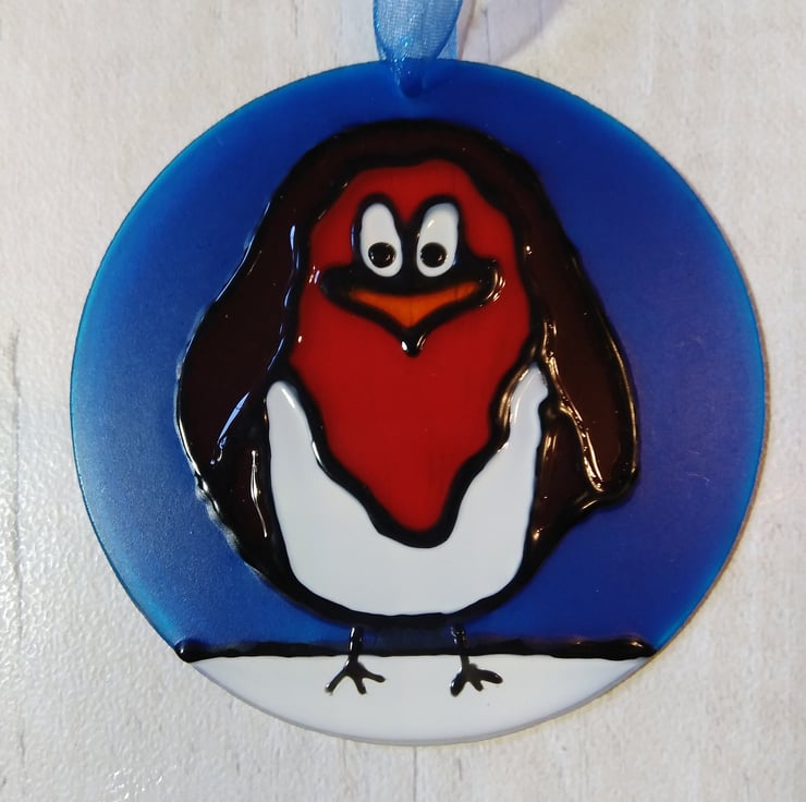 Robin Christmas Decoration, glass tree ornament, hand painted sun catcher