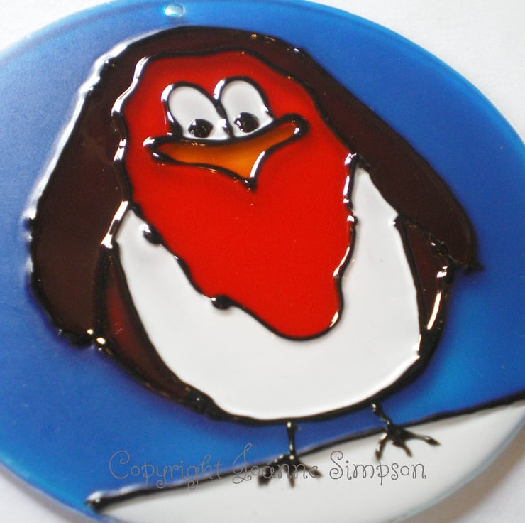A lovely hand painted Christmas decoration featuring one of my Robin designs.
