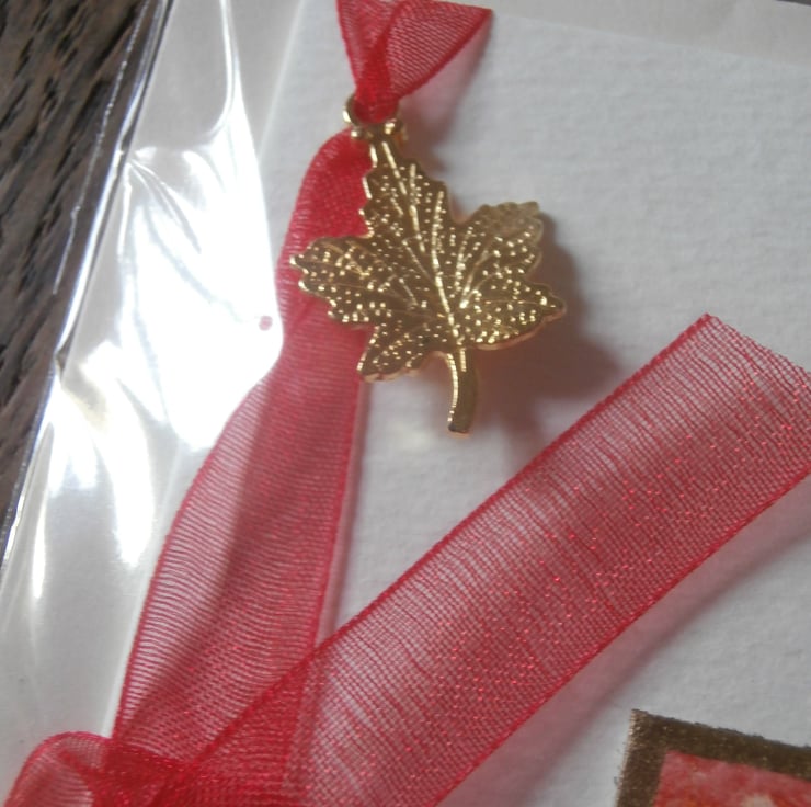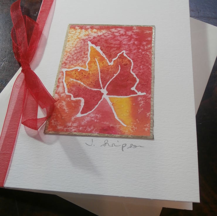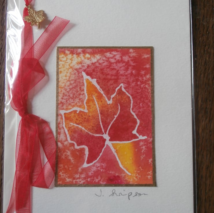 All cards are individually hand painted by me on a panel of quality watercolour paper and then attached to a card blank. Finished with a red coloured organza ribbon and a 'Maple leaf' charm.