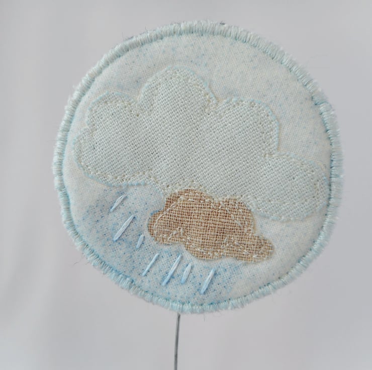 This decoration is handmade from scraps of dressmaking fabrics. The design is appliqued onto a cotton backing which I've hand coloured and painted, and then machine embroidered before finally adding hand embroidered details. The front design then has a metal support glued to it before the whole thing is carefully hand stitched onto a felt backing panel to finish.