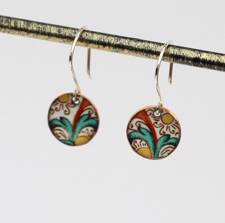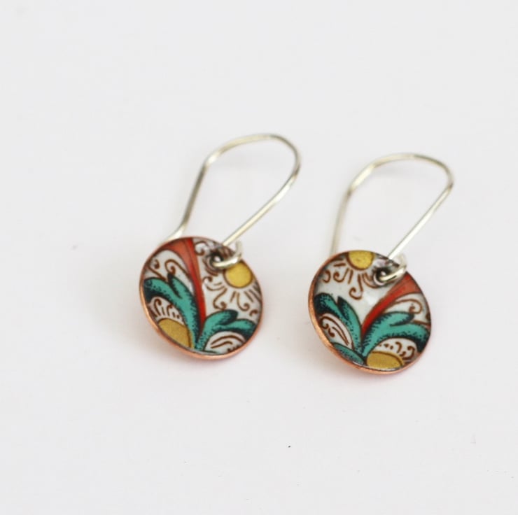 Patterned enamelled copper earrings
