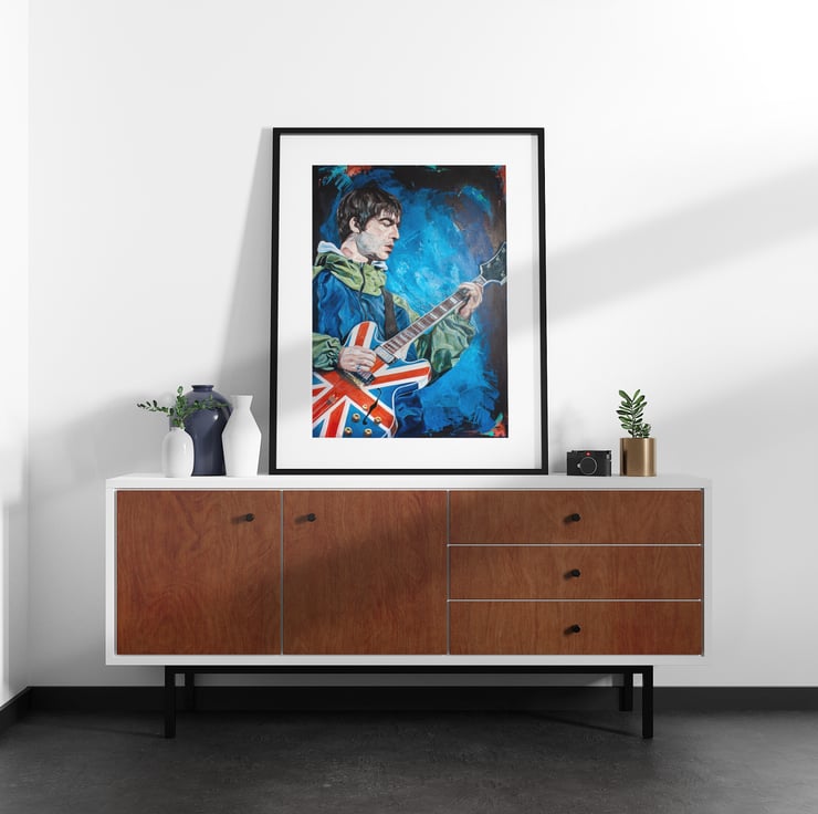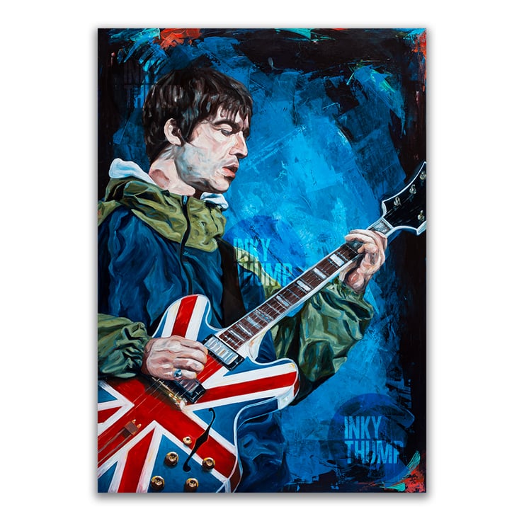 This print was taken from an original painting of Noel Gallagher of Oasis at their legendary gig at Maine Road in 1996.