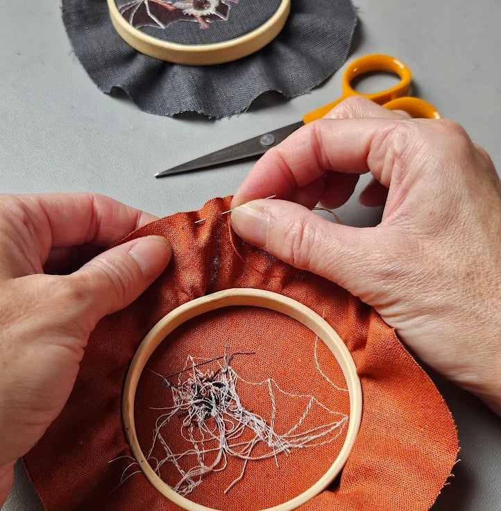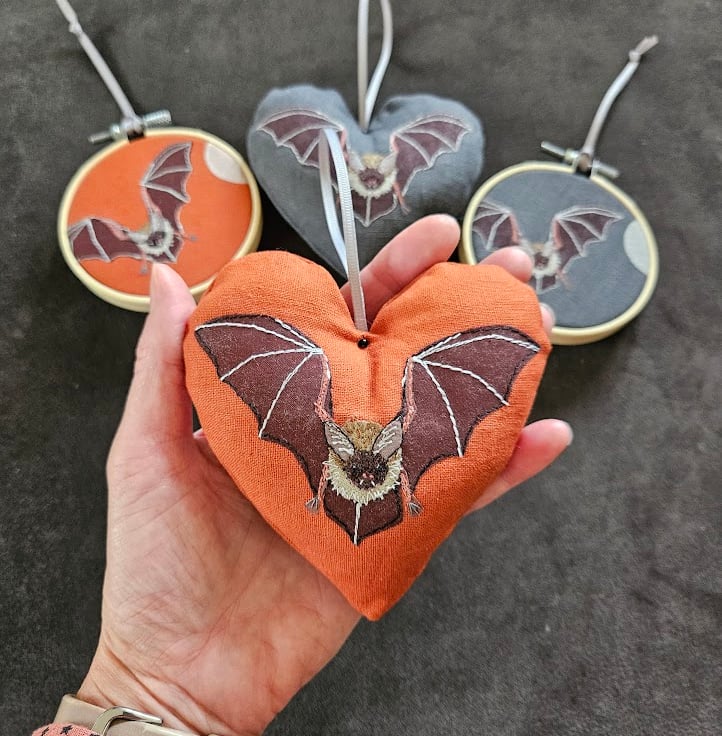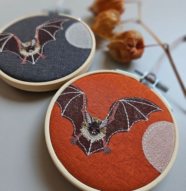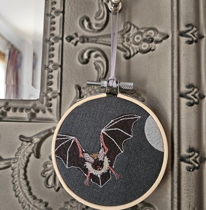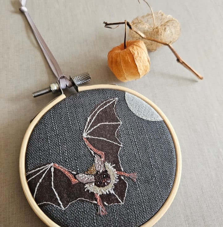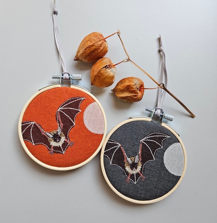 These bat embroidered mini hoops are a 'seasonal take' on my popular handmade hanging decorations.