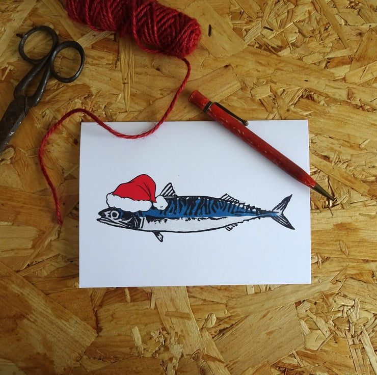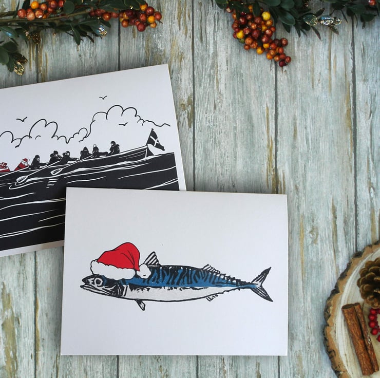 A fun Christmas card featuring a cute Cornish mackerel in a Santa hat. Send Fishmas wishes to your friends and family. Perfect for fish lovers or those who like all things coastal.