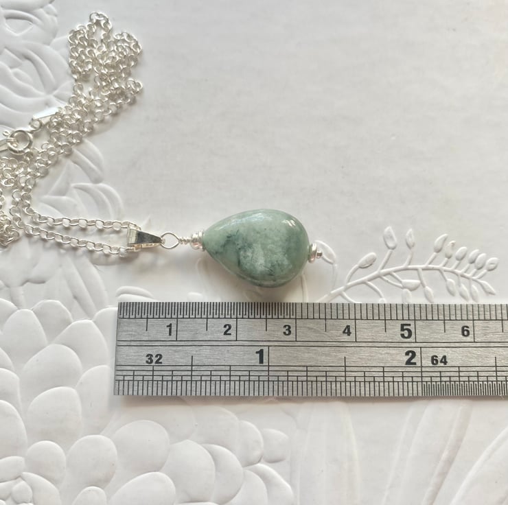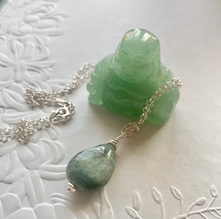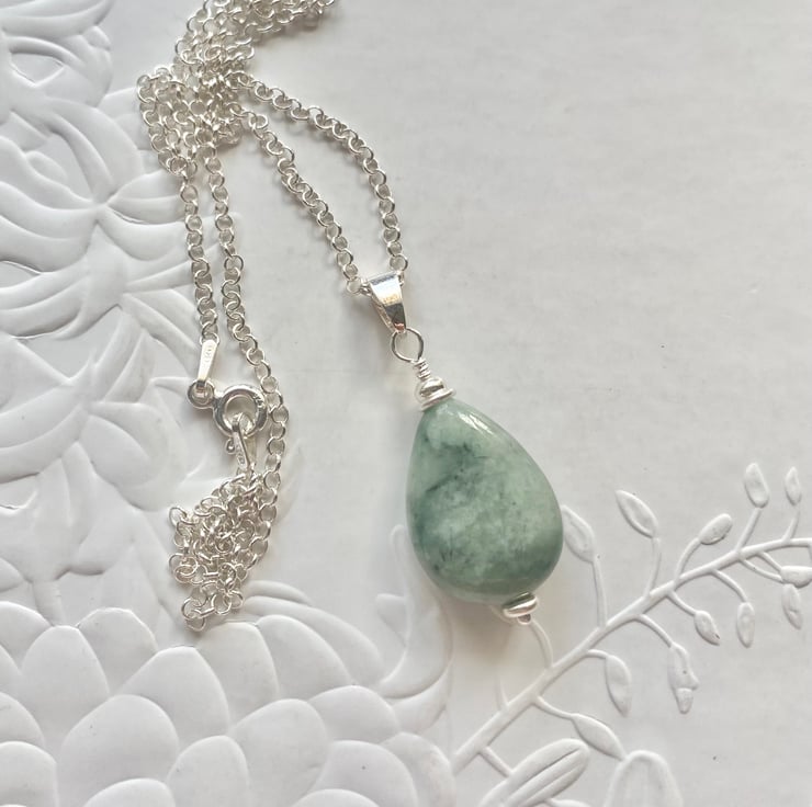 A beautiful handmade Jade pendant featuring a Grade A dark green, Burmese Jadeite drop with a 925 sterling silver bail. The pendant comes on an 18in sterling silver chain and will be received packaged in an Eco Lola Loves presentation box. I will gift wrap this for you. I can include a short message, if you are buying as a gift. Just leave the details when placing your order.